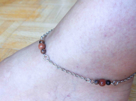 Anklet with mixed golden and blue goldstone on hypoallergenic stainless steel chain