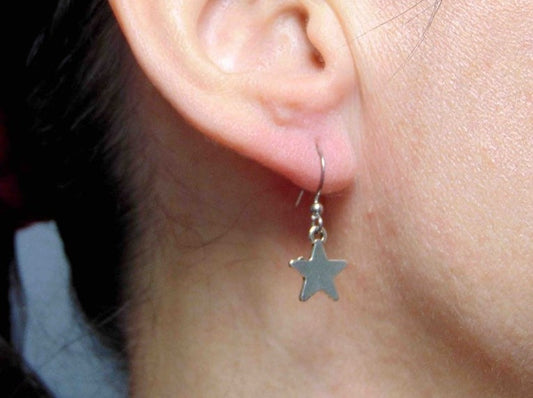 Short earrings with small translucent cherry quartz stone stars, stainless steel hooks