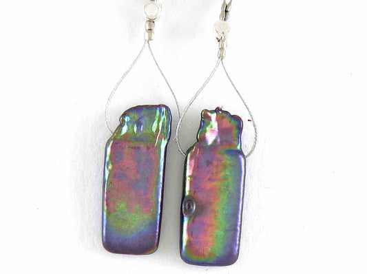 Long earrings with large iridescent gray freshwater pearls, baroque rectangle shape, stainless steel hooks
