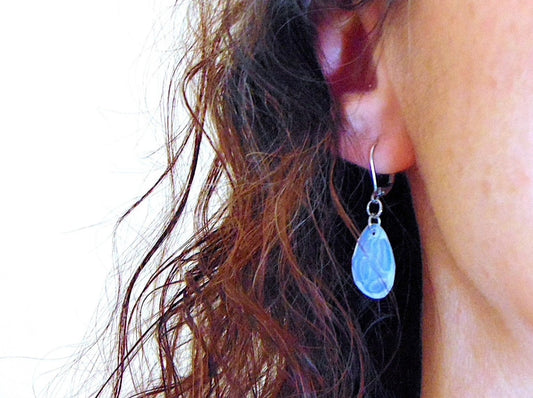 Short earrings with 16mm Vitrail Light (blue/lilac) baroque Swarovski crystals, stainless steel studs with tiny clear crystals