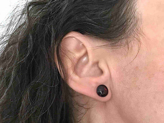 Puces d'oreilles 10mm cabochons ronds de grenat rouge foncé, tiges acier inoxydable