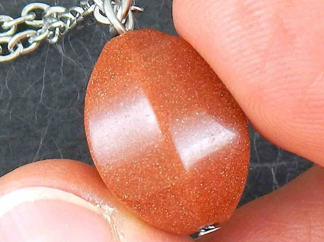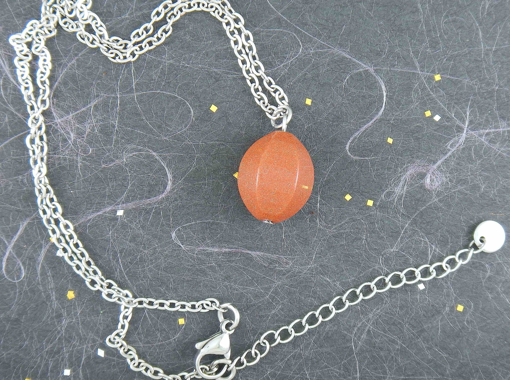 13-inch necklace with pod-shaped copper brown goldstone pendant, stainless steel chain