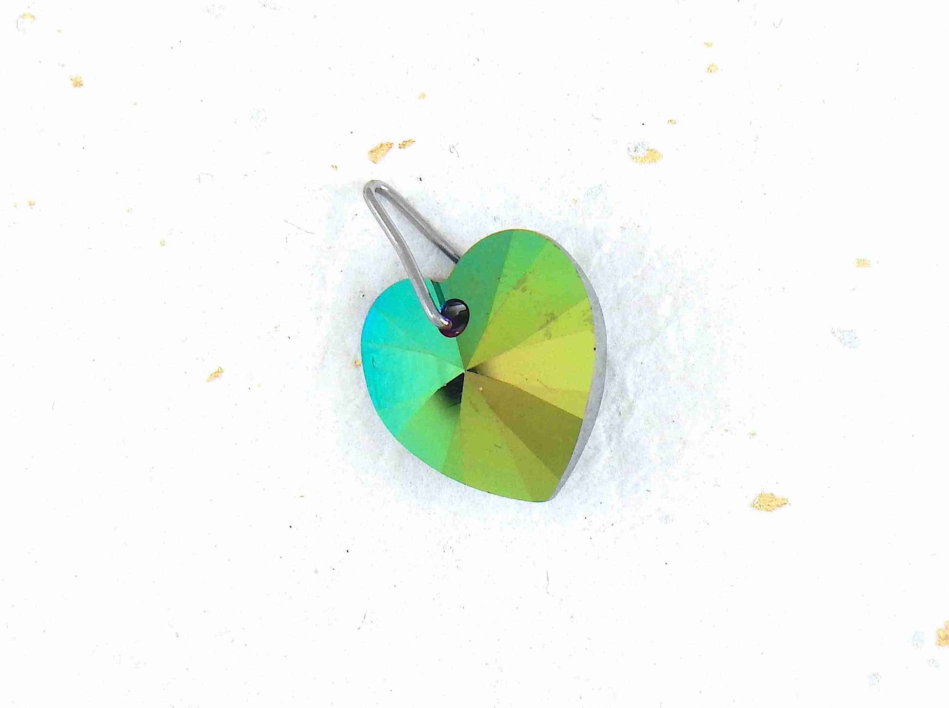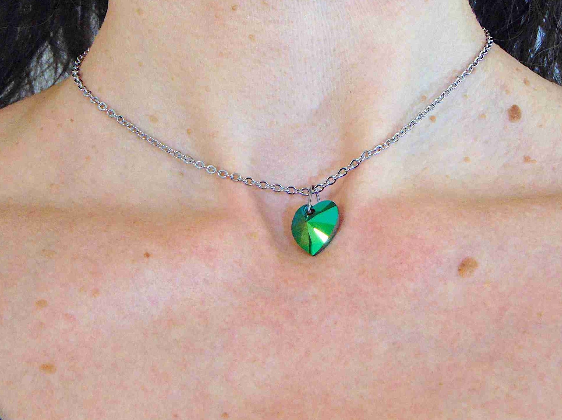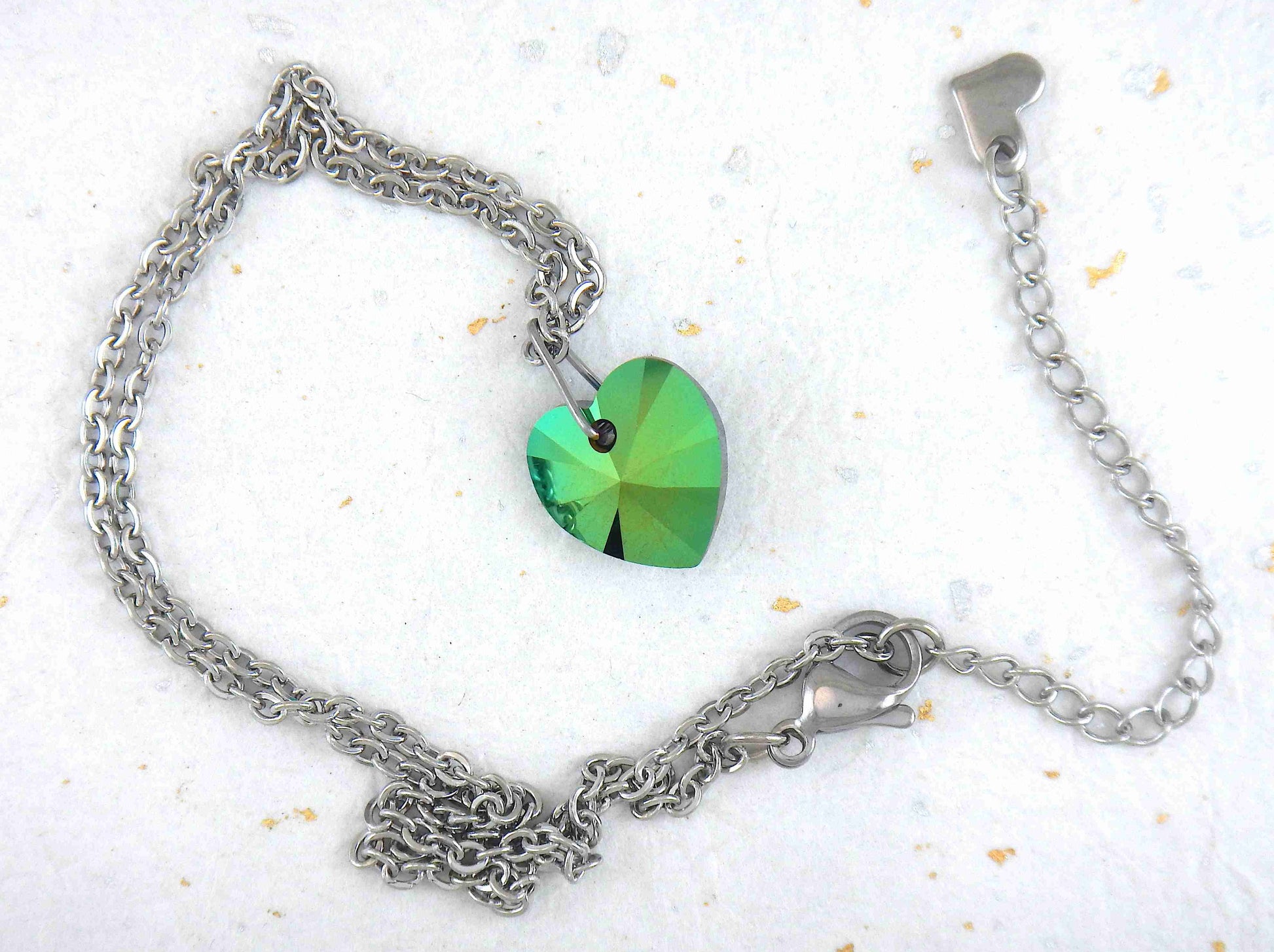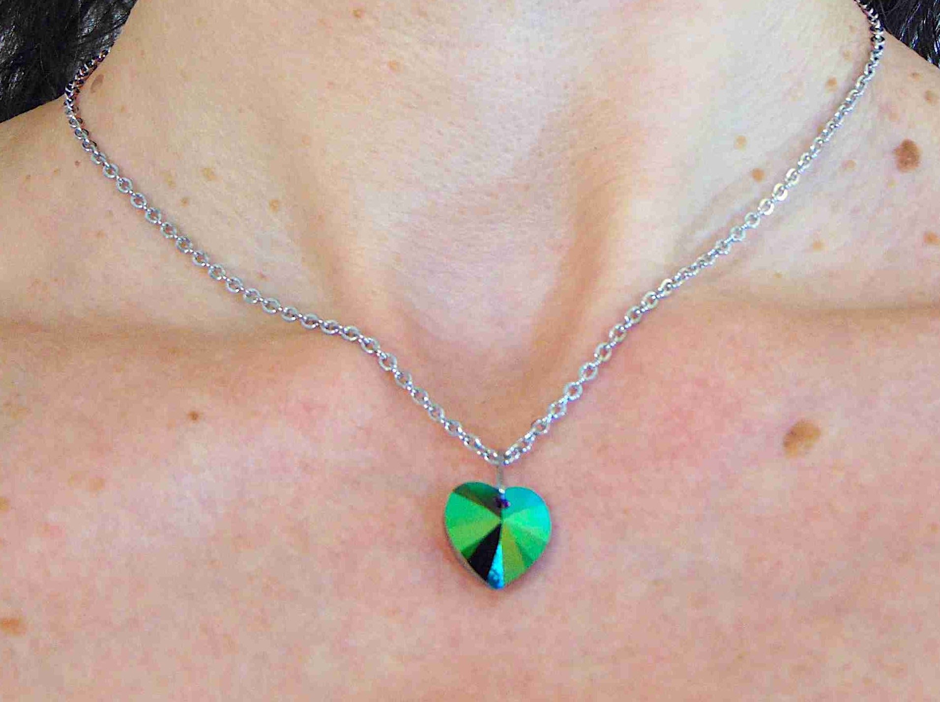 14/16-inch necklace with 14mm Scarabeus Green faceted Swarovski crystal heart pendant, stainless steel chain