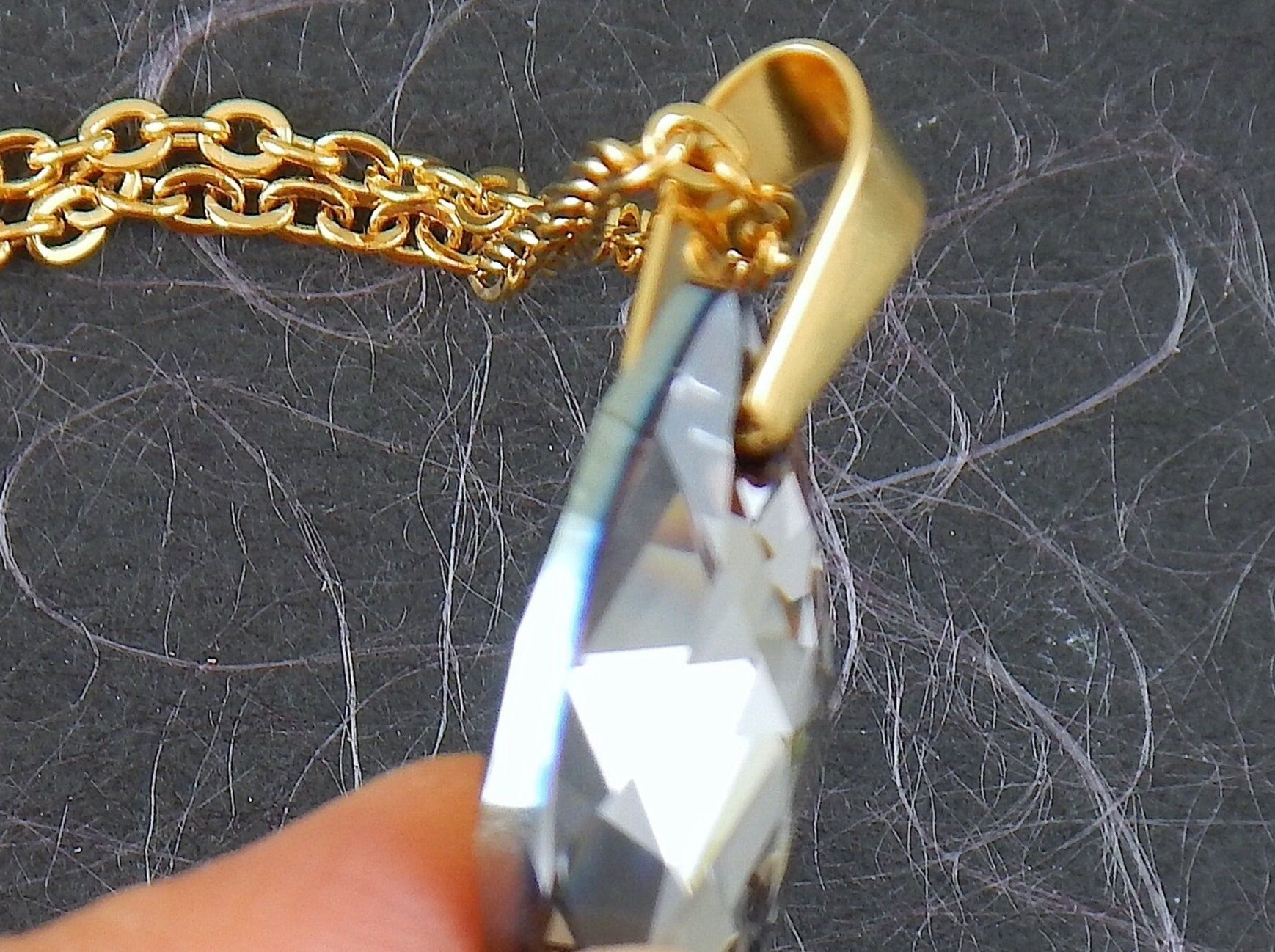 When you're not wearing it, keep your crystal jewelry in a box or soft packaging designed for it. Should you bring it along on a trip, wrap the crystal in a soft cloth to separate it from the other elements (chain, clasp, hooks...).