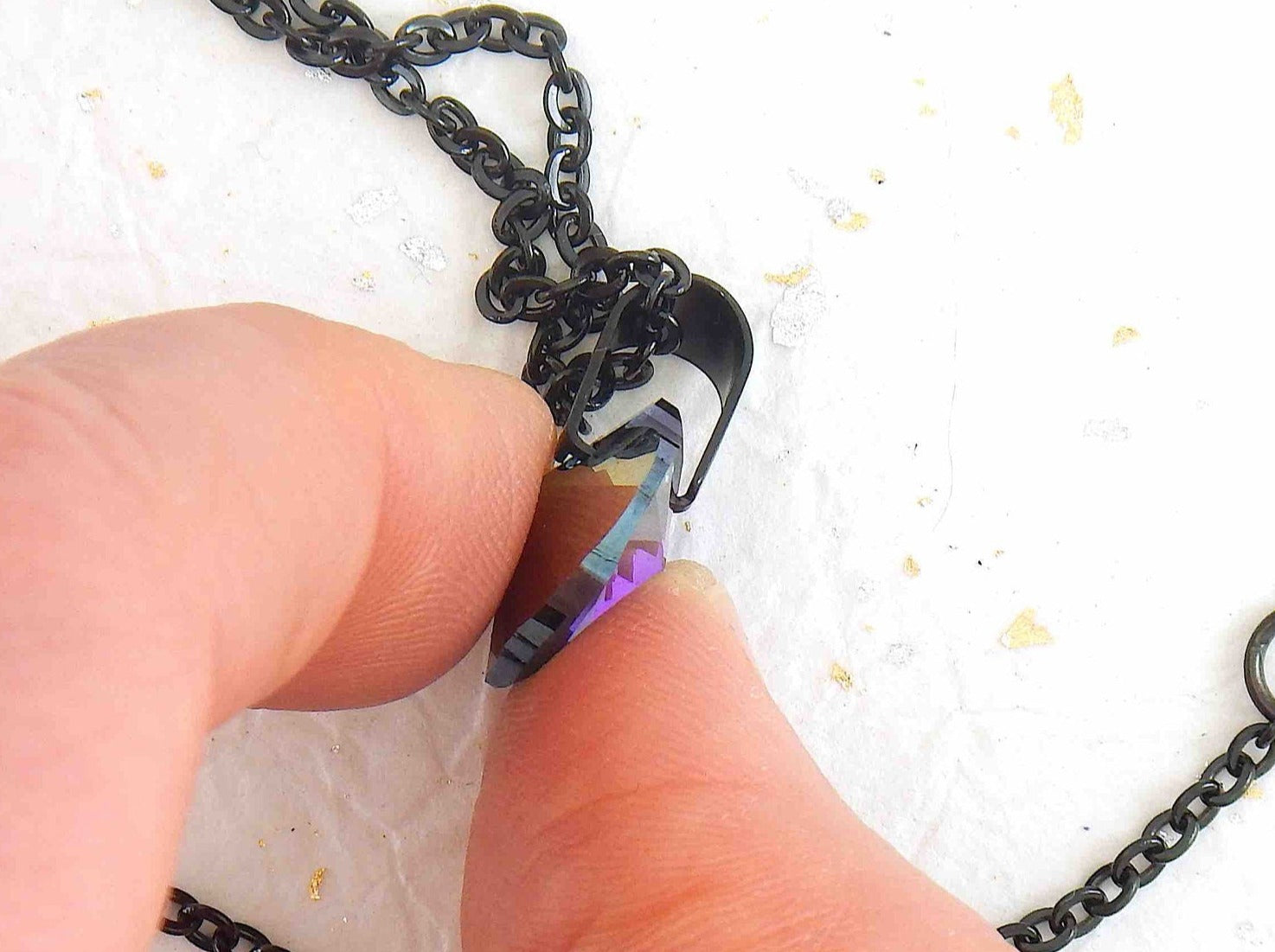 When you're not wearing it, keep your crystal jewelry in a box or soft packaging designed for it. Should you bring it along on a trip, wrap the crystal in a soft cloth to separate it from the other elements (chain, clasp, hooks...).
