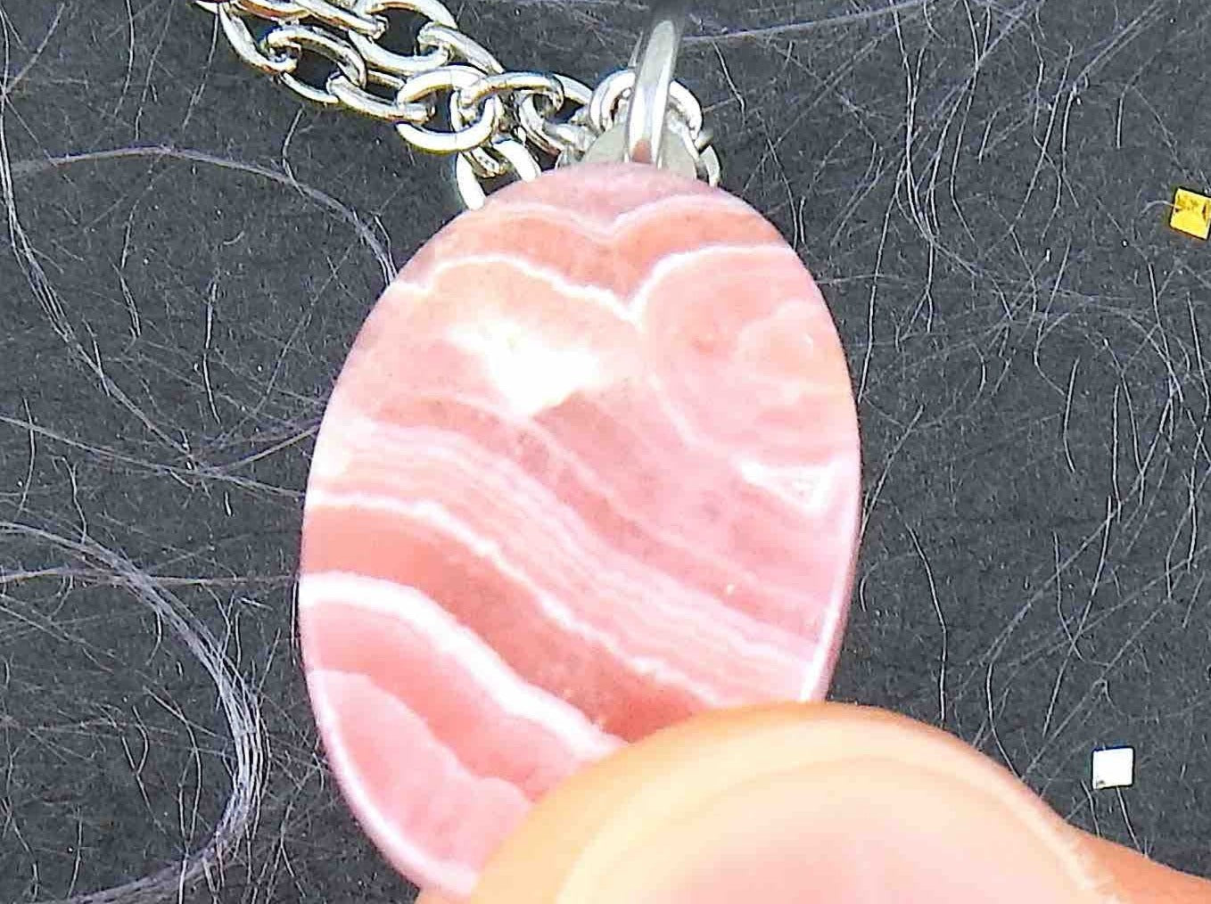 16-inch necklace with oval marbled pink-white rhodocrosite stone pendant, stainless steel chain