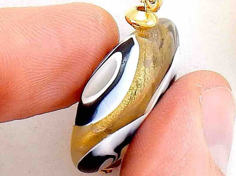 A spectacular bead with a black and white 8 pattern on gold foil. Bead bought in Murano, an exclusivity!