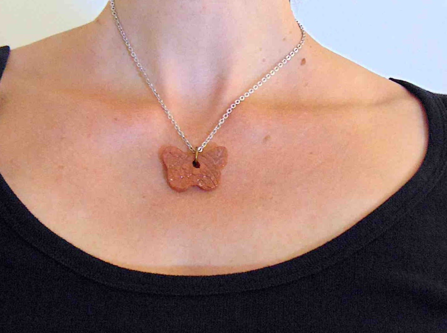A small textured butterfly to hang around your neck
