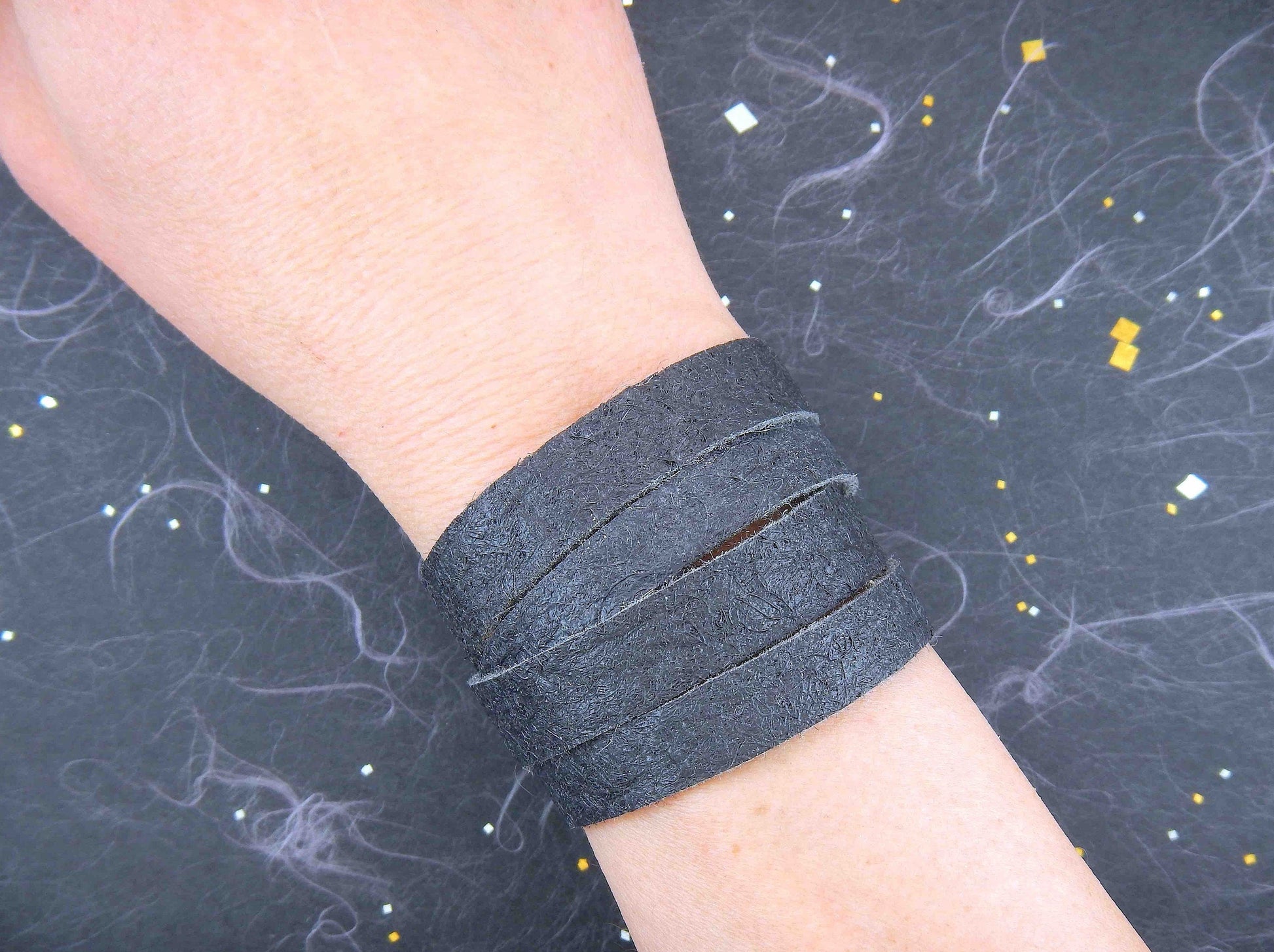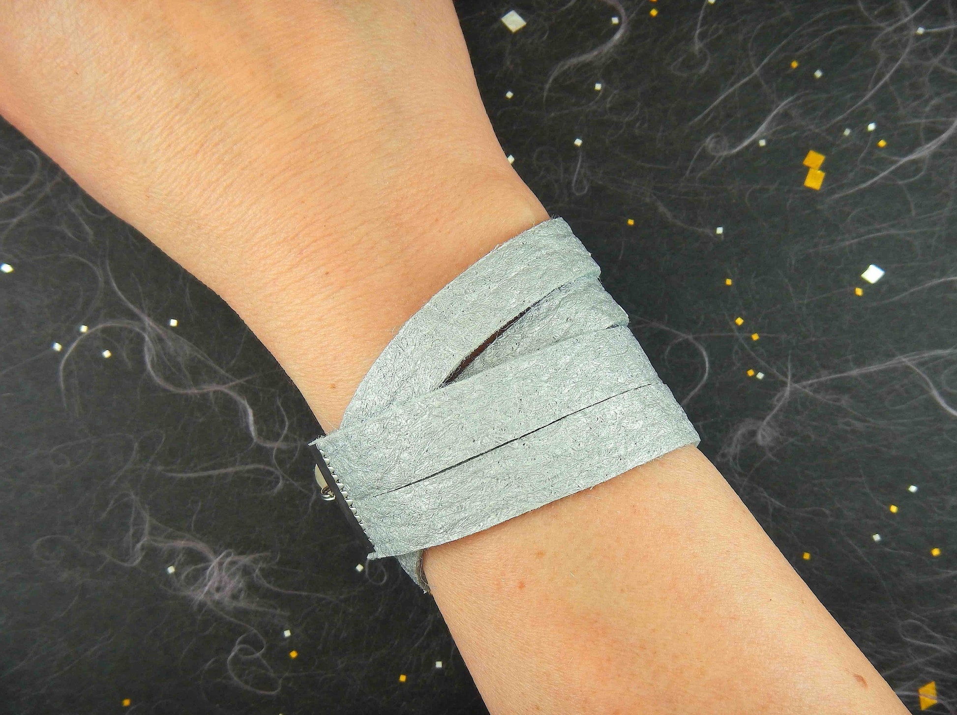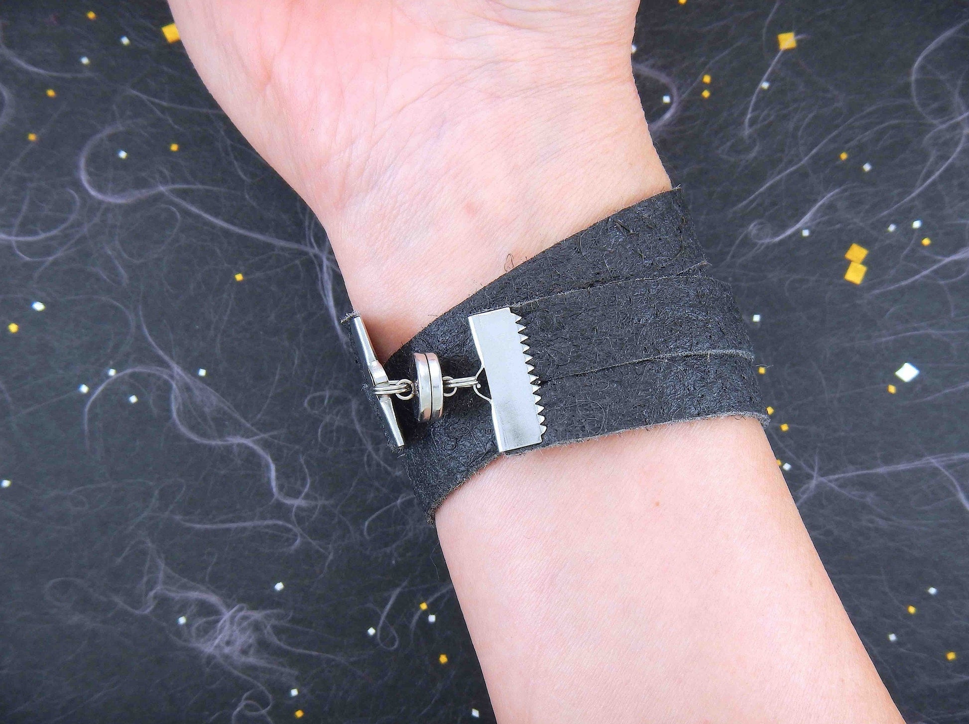 20mm wrap bracelet made of Piñatex (vegan leather) in 9 colours (black, gray, silver, white, blue, mulberry, brown, gold), magnetic stainless steel clasp