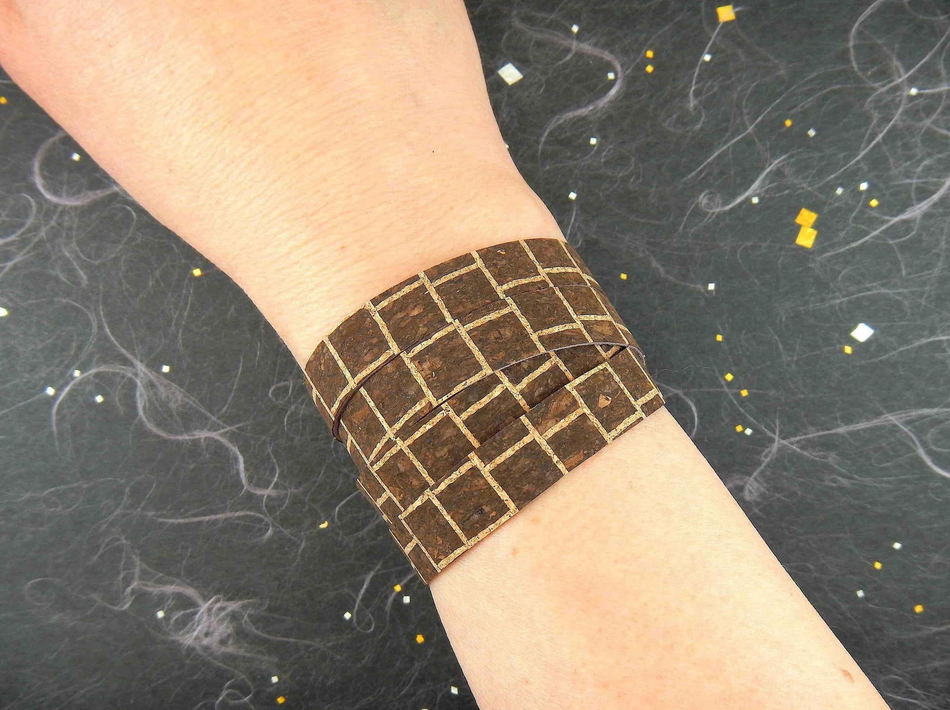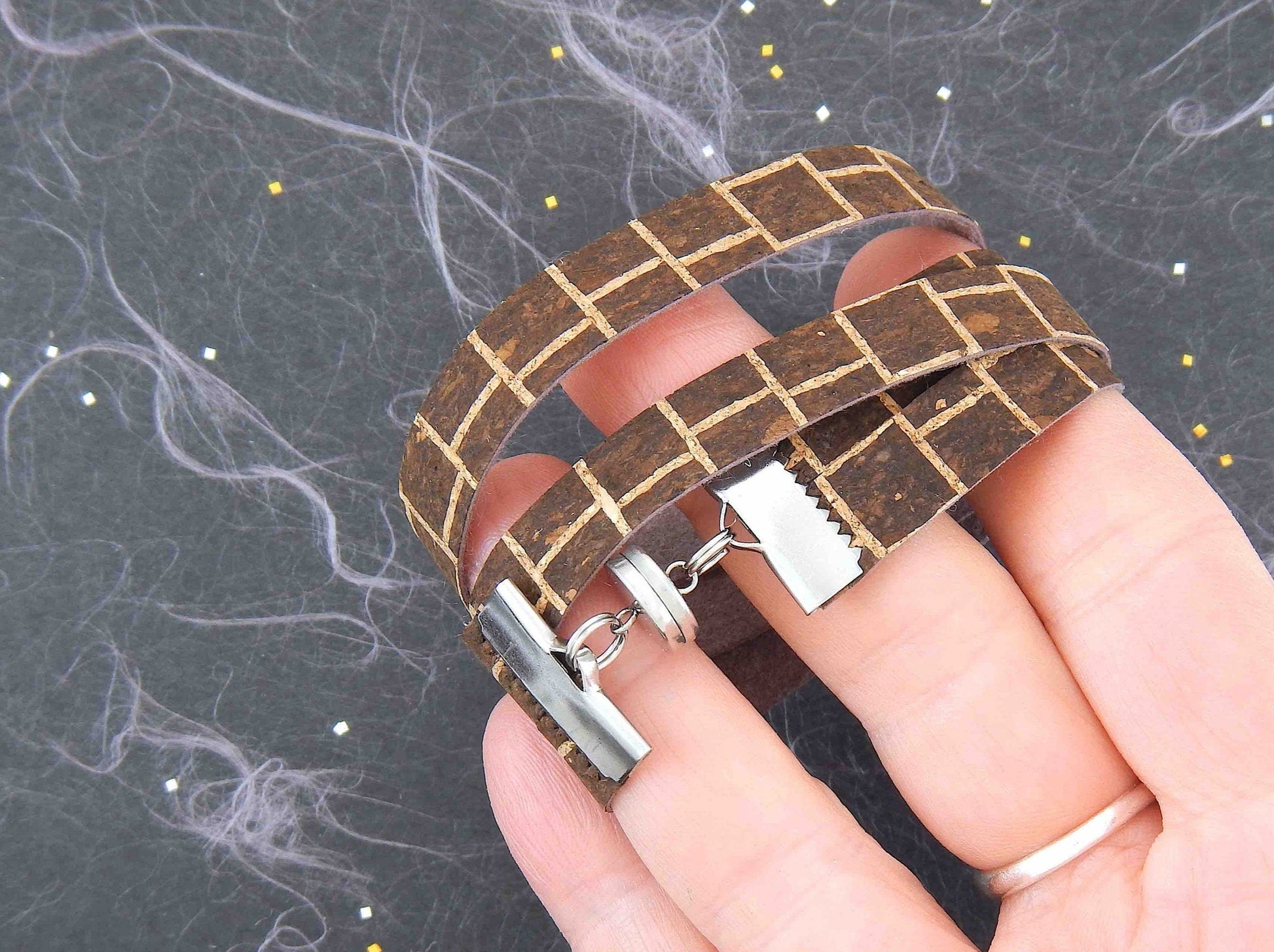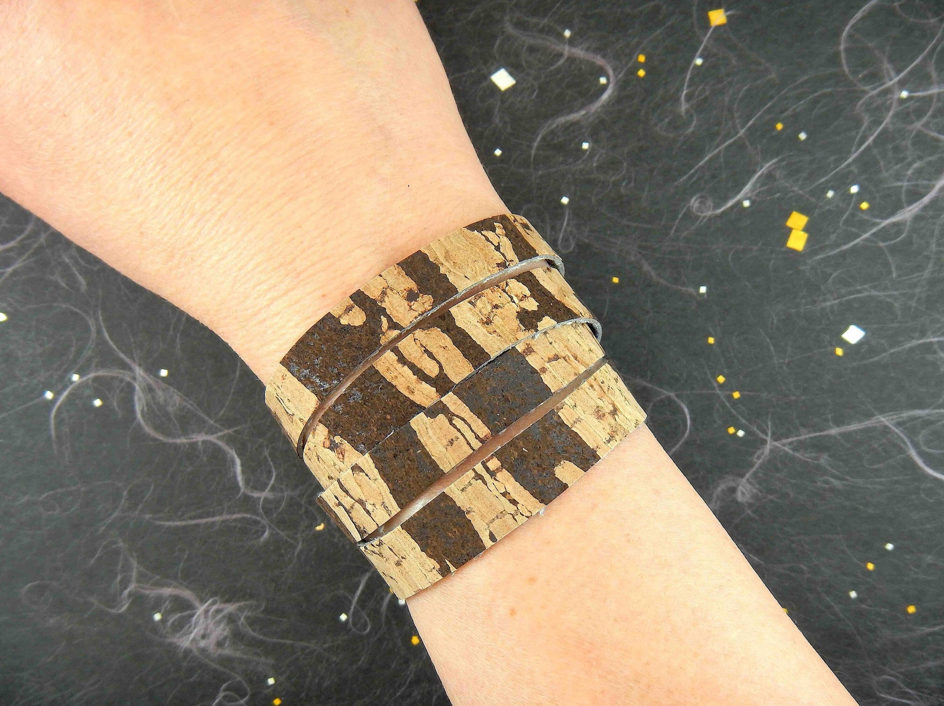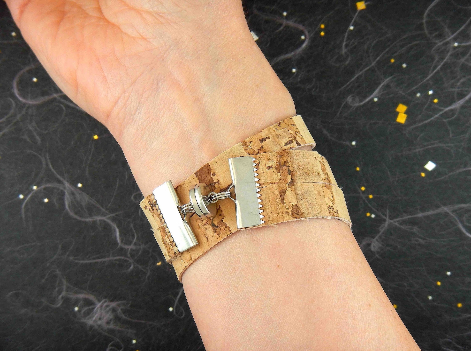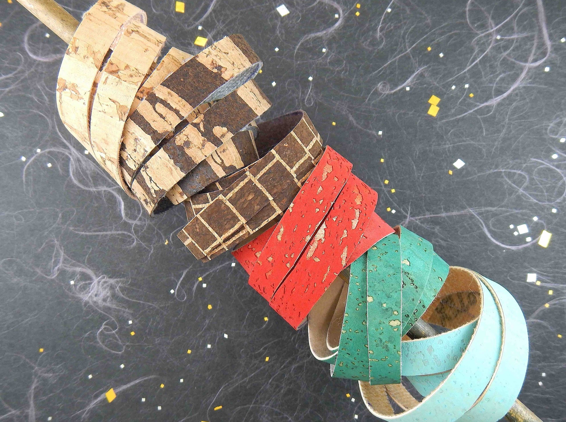 20mm wrap bracelet made of cork in 6 colours (brown tiling, brown zebra, natural, sky blue, emerald green, red and gold speckles), magnetic stainless steel clasp