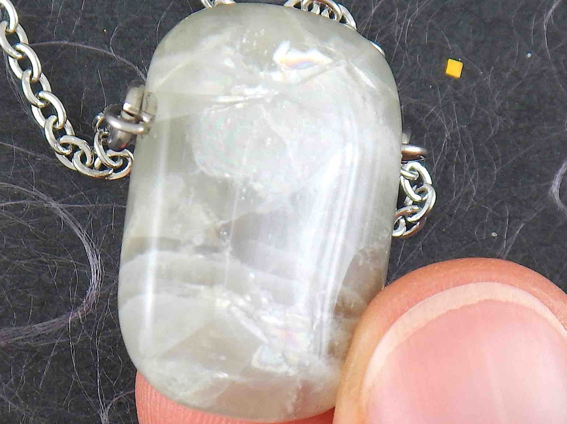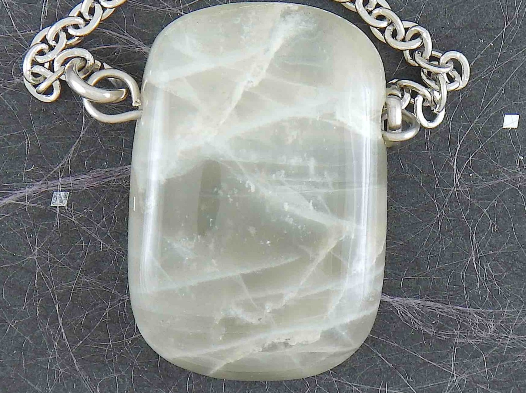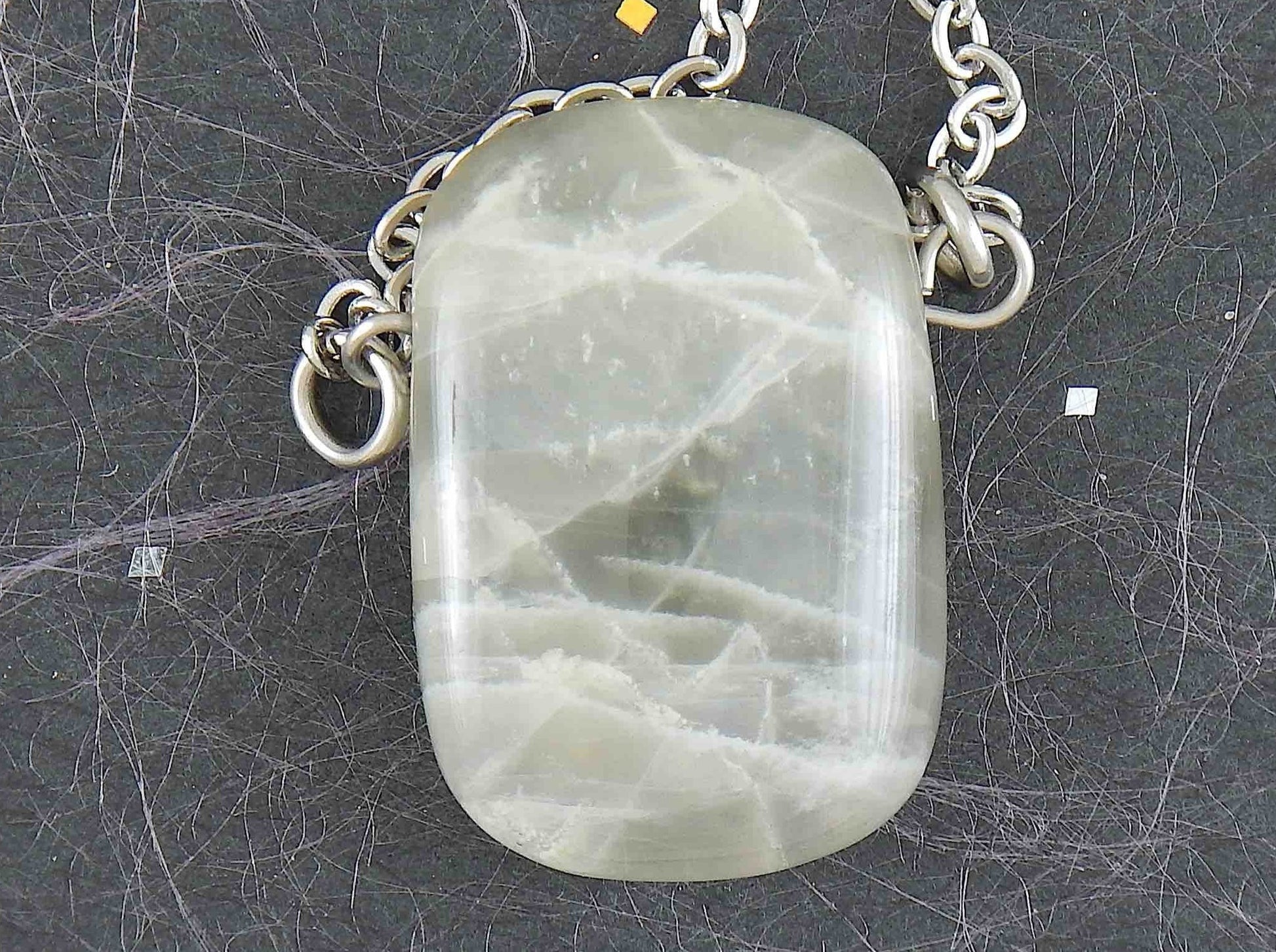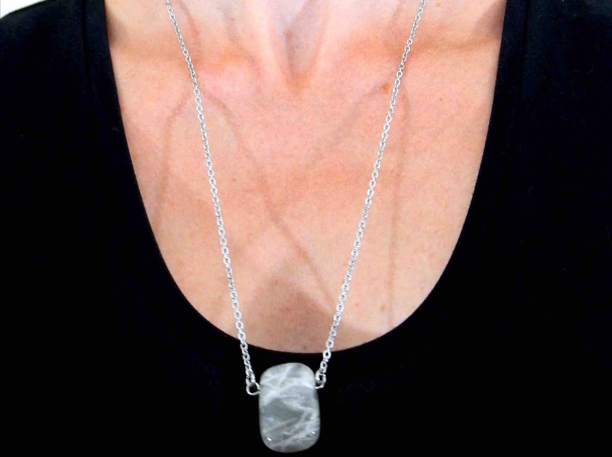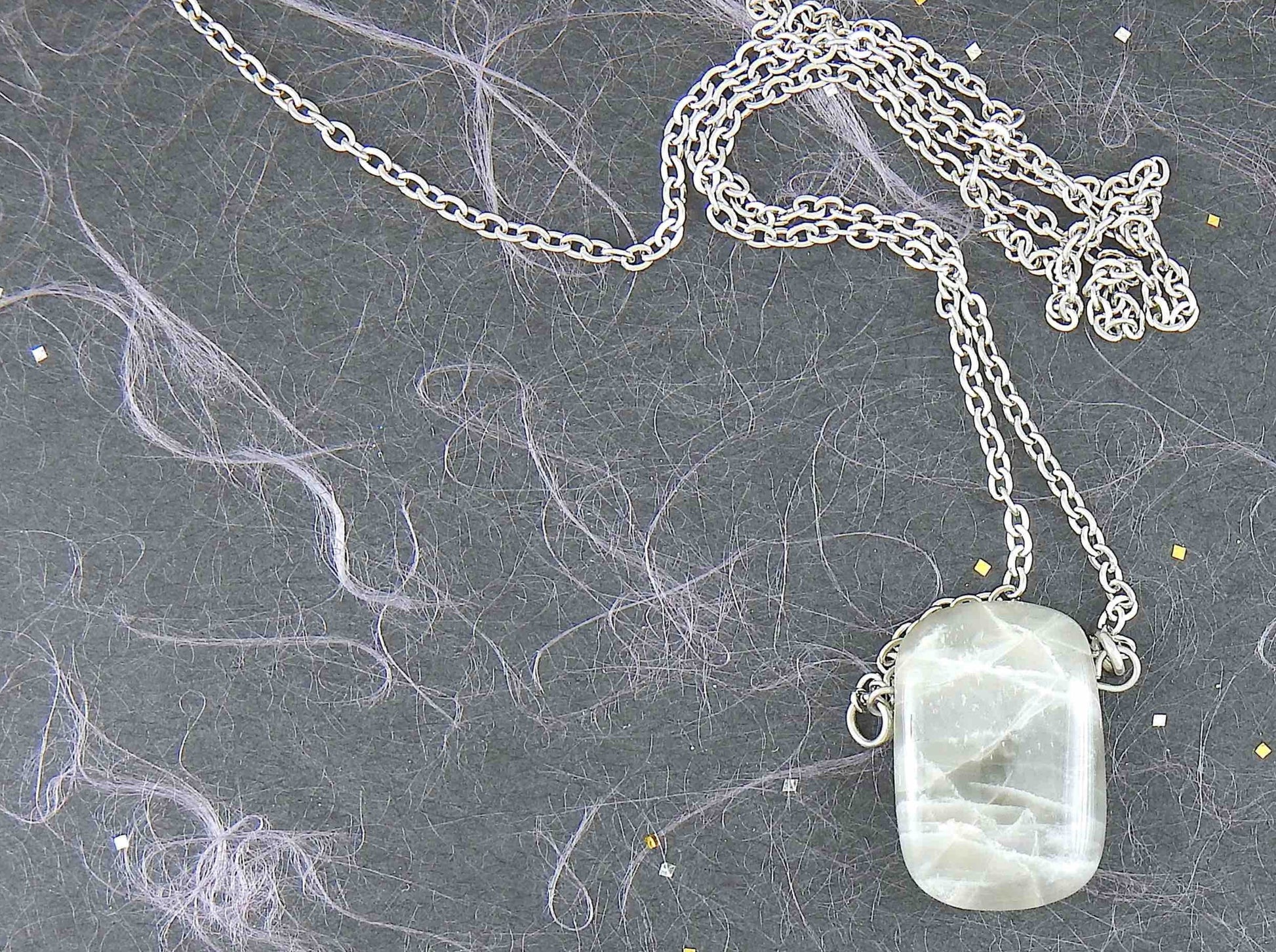 26-inch necklace with rectangular natural silver moonstone pendant, stainless steel chain