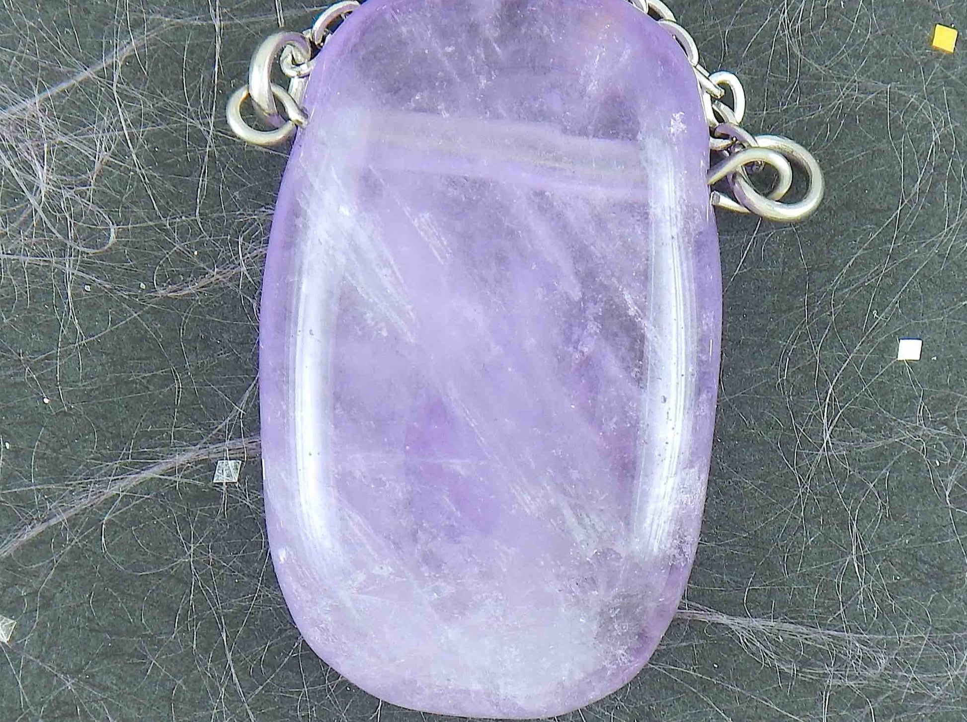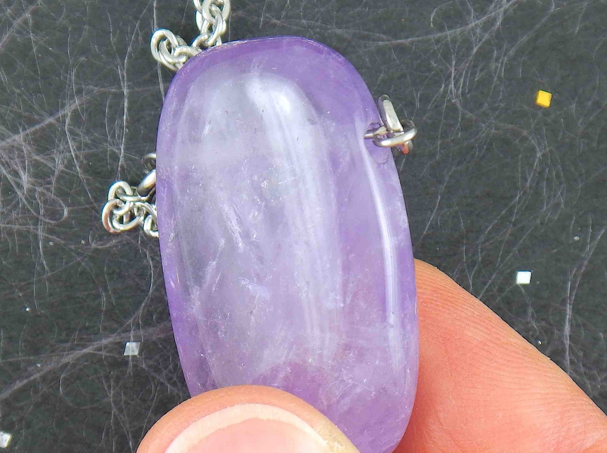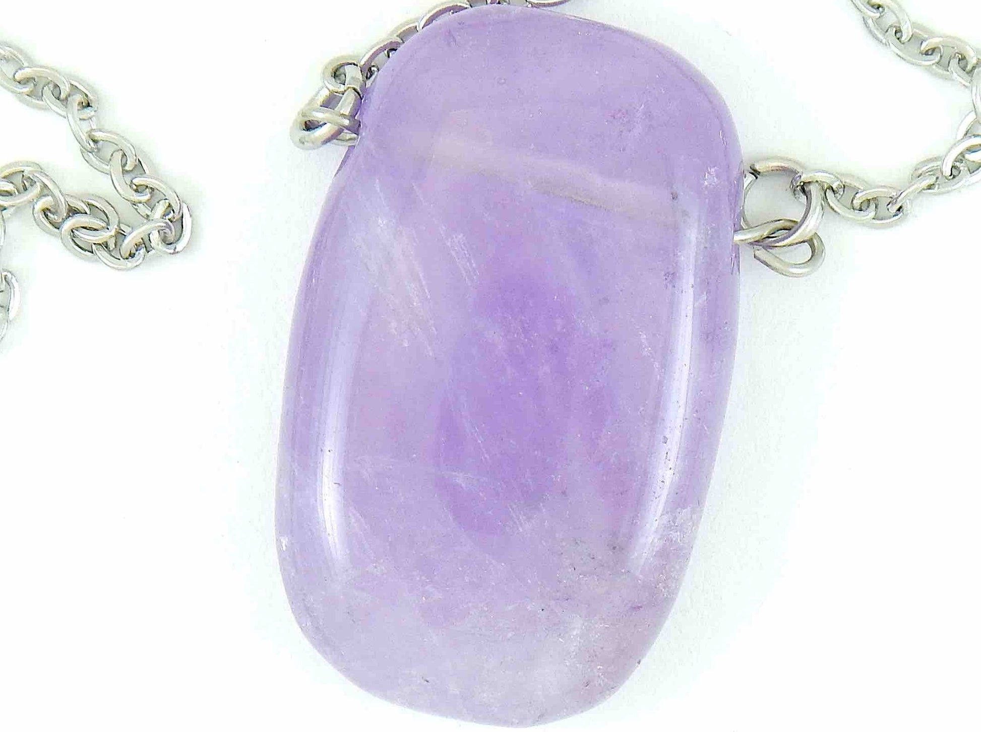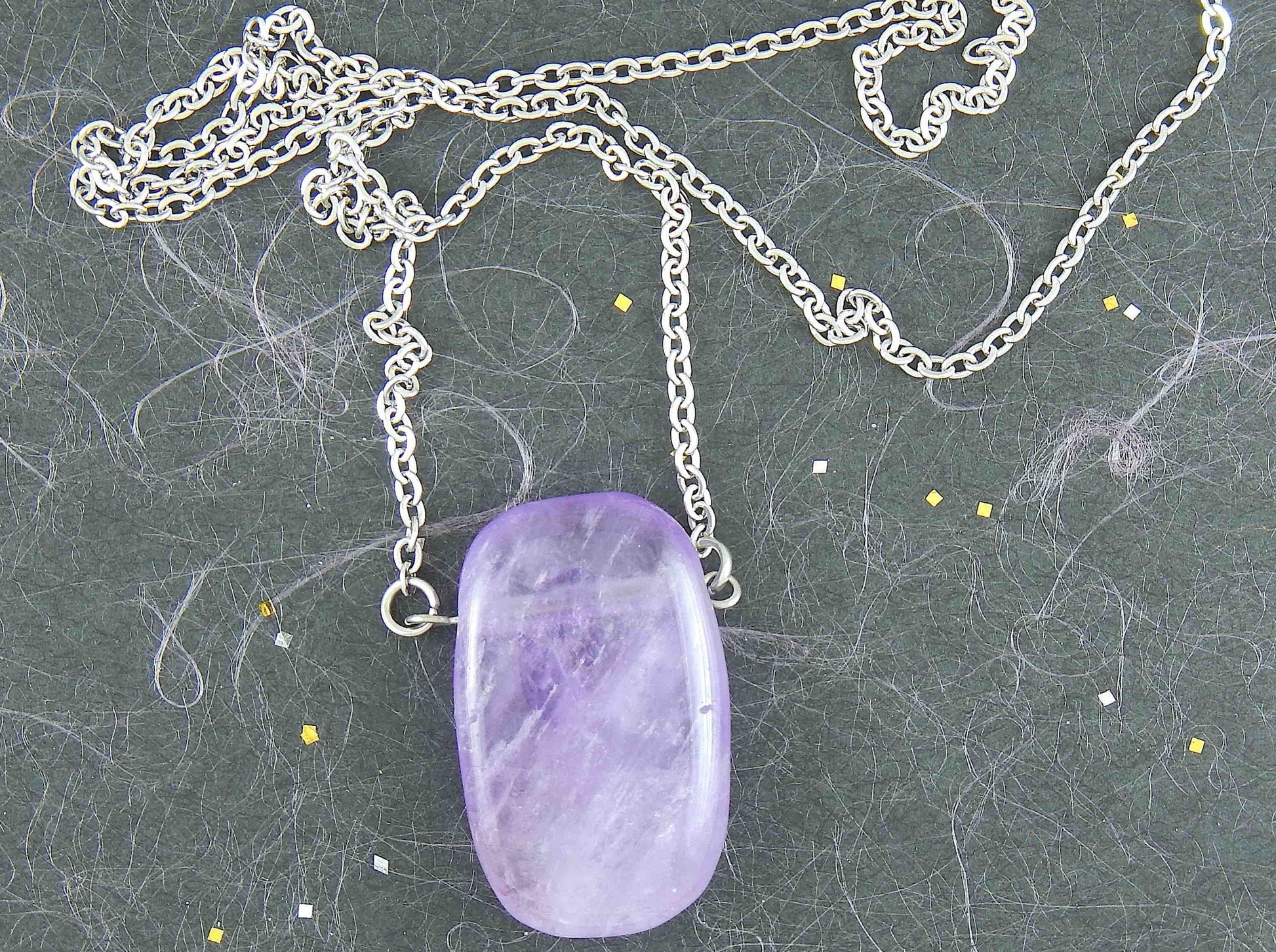 26-inch necklace with rectangular smoky light violet amethyst stone pendant, stainless steel chain