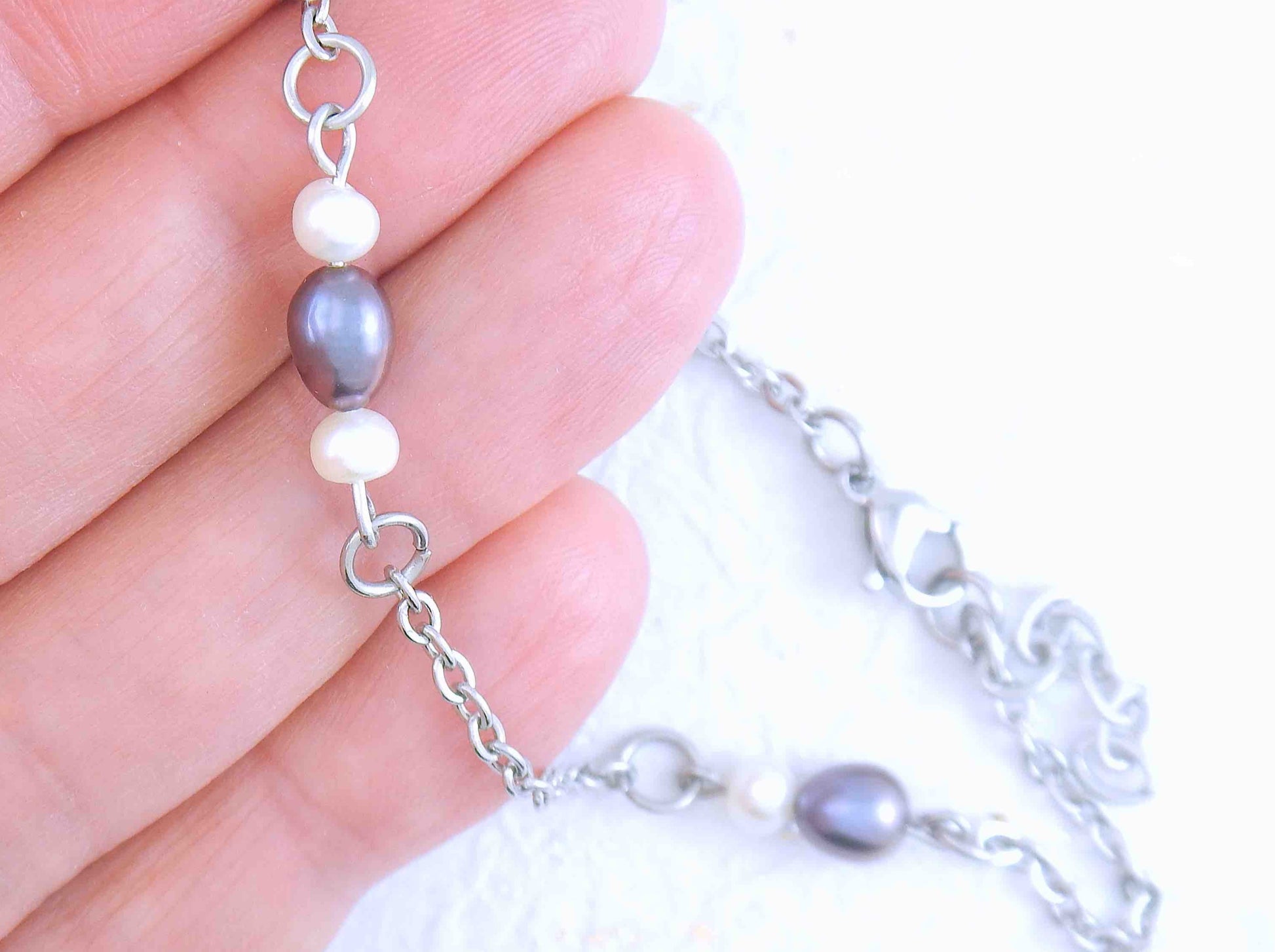 IMPORTANT: I recommend NOT wearing this anklet in chlorinated water, as it could damage the pearls.