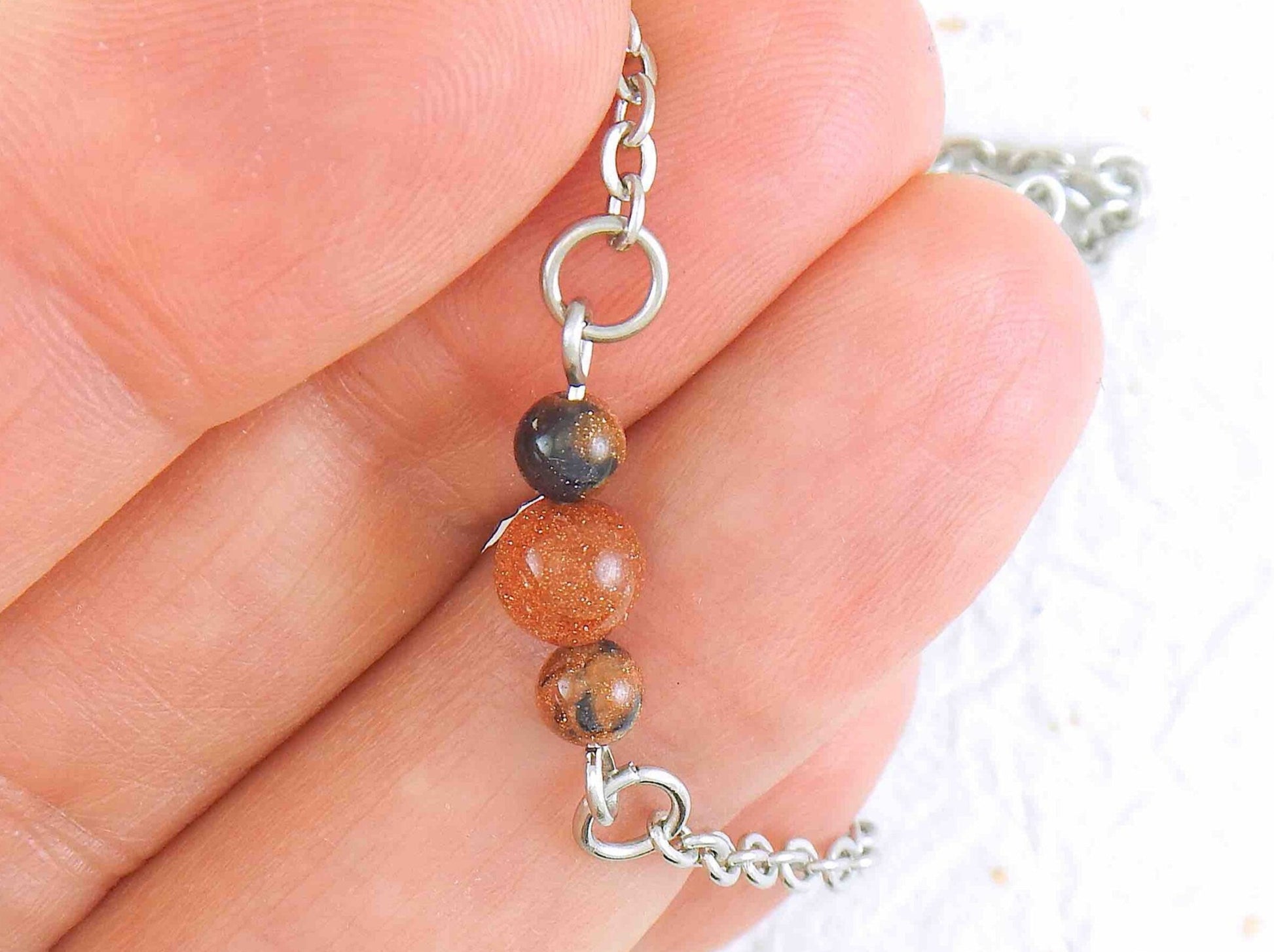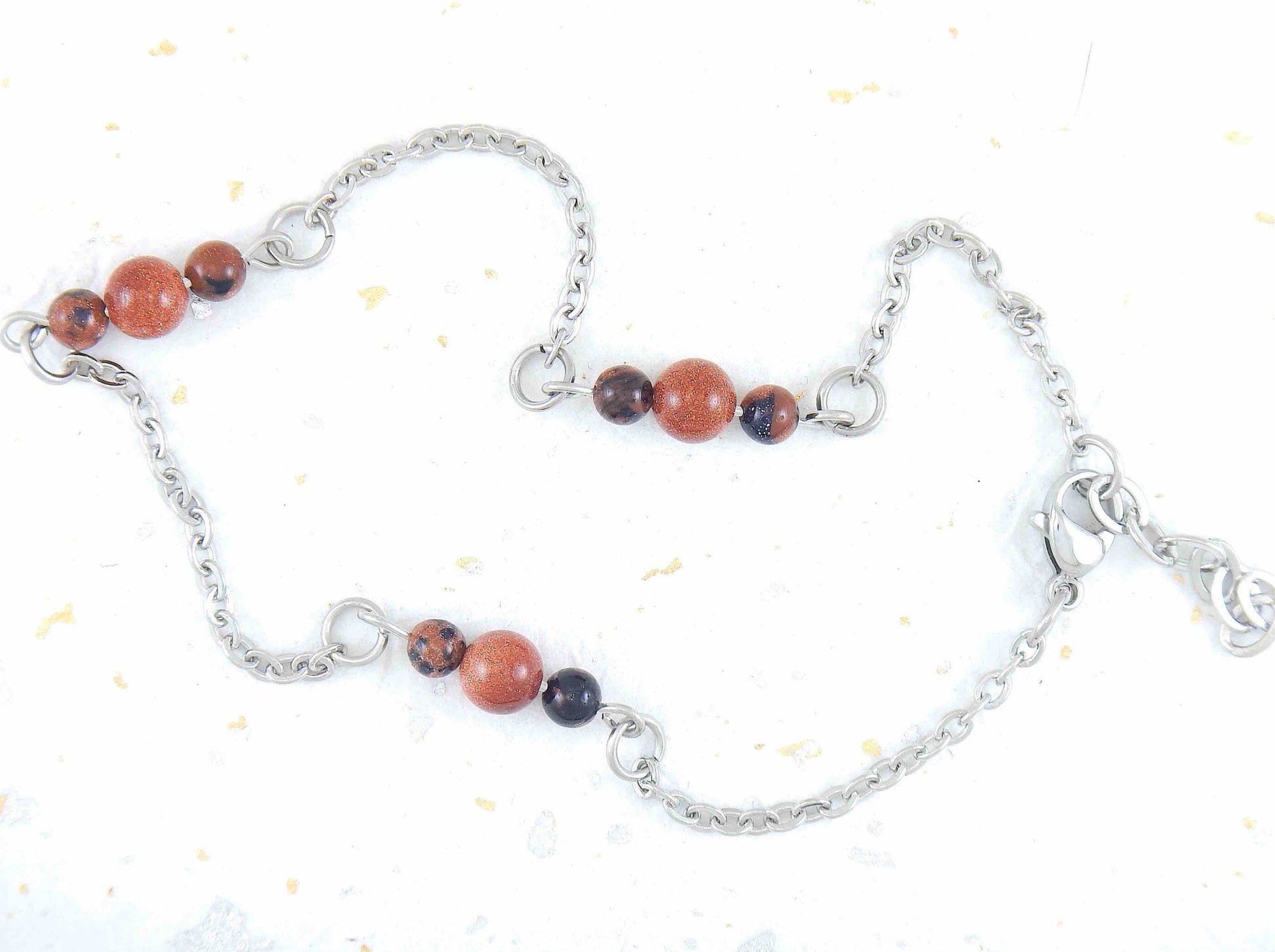 Anklet with mixed golden and blue goldstone on hypoallergenic stainless steel chain
