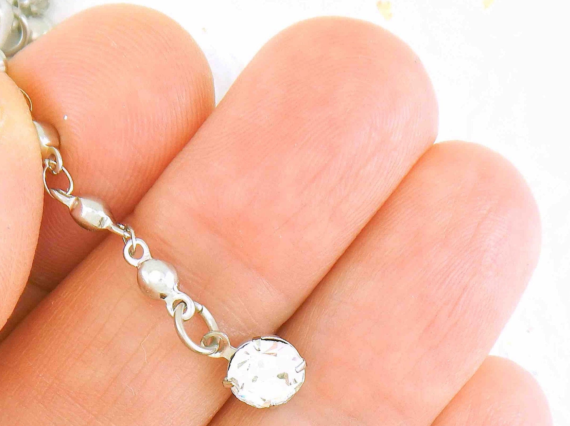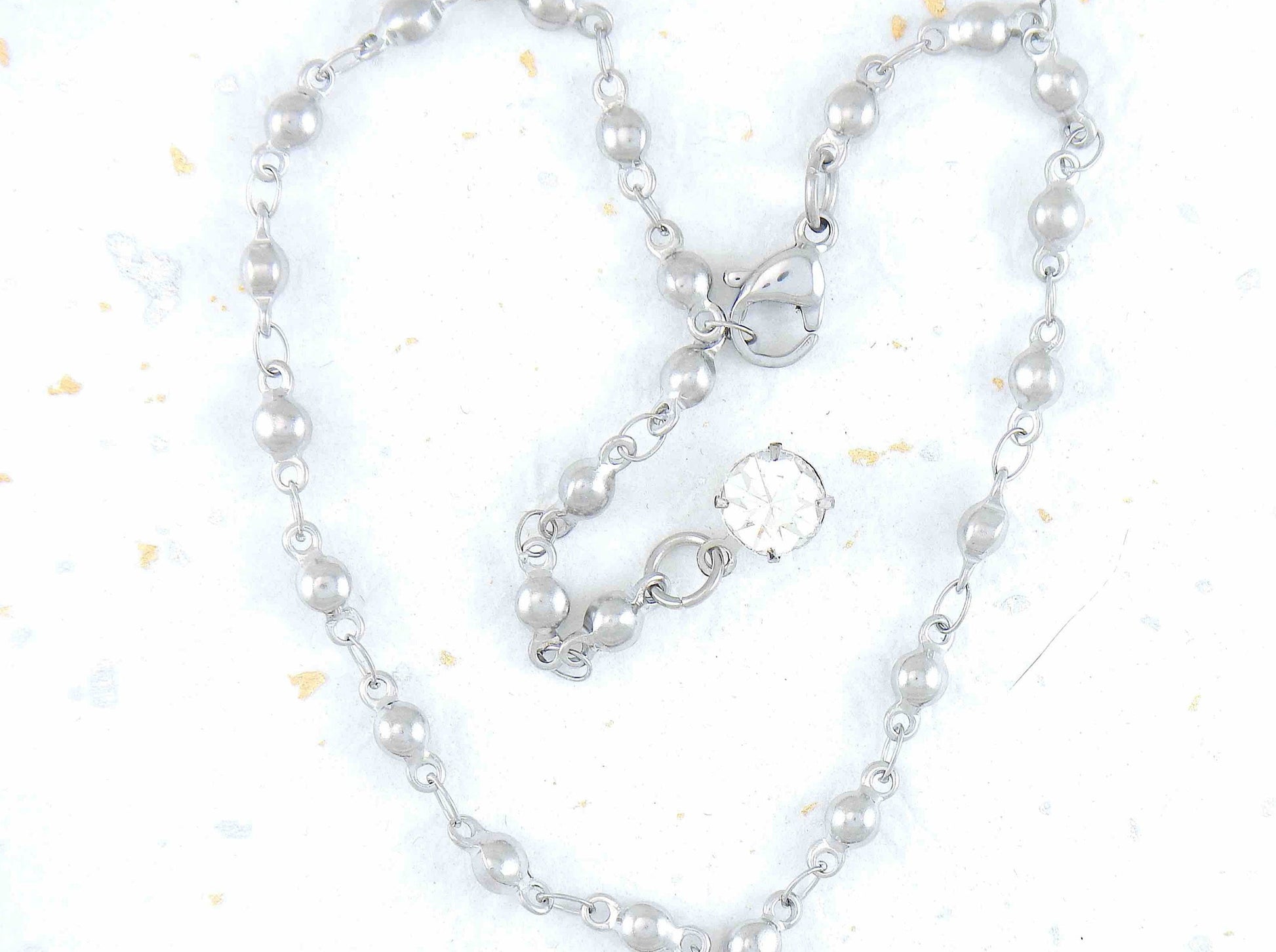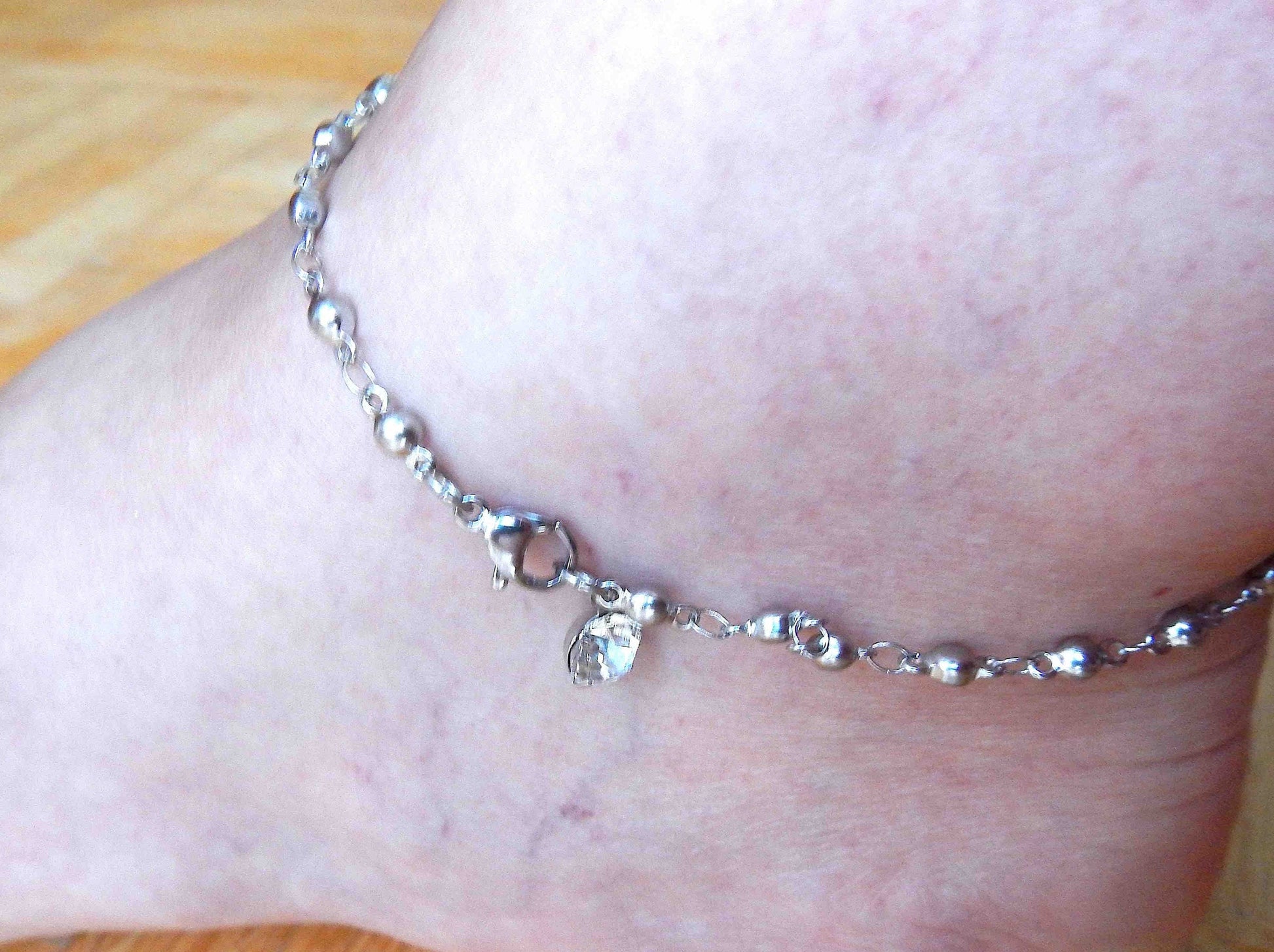 Anklet with transparent cristal charm on hypoallergenic stainless steel ball chain