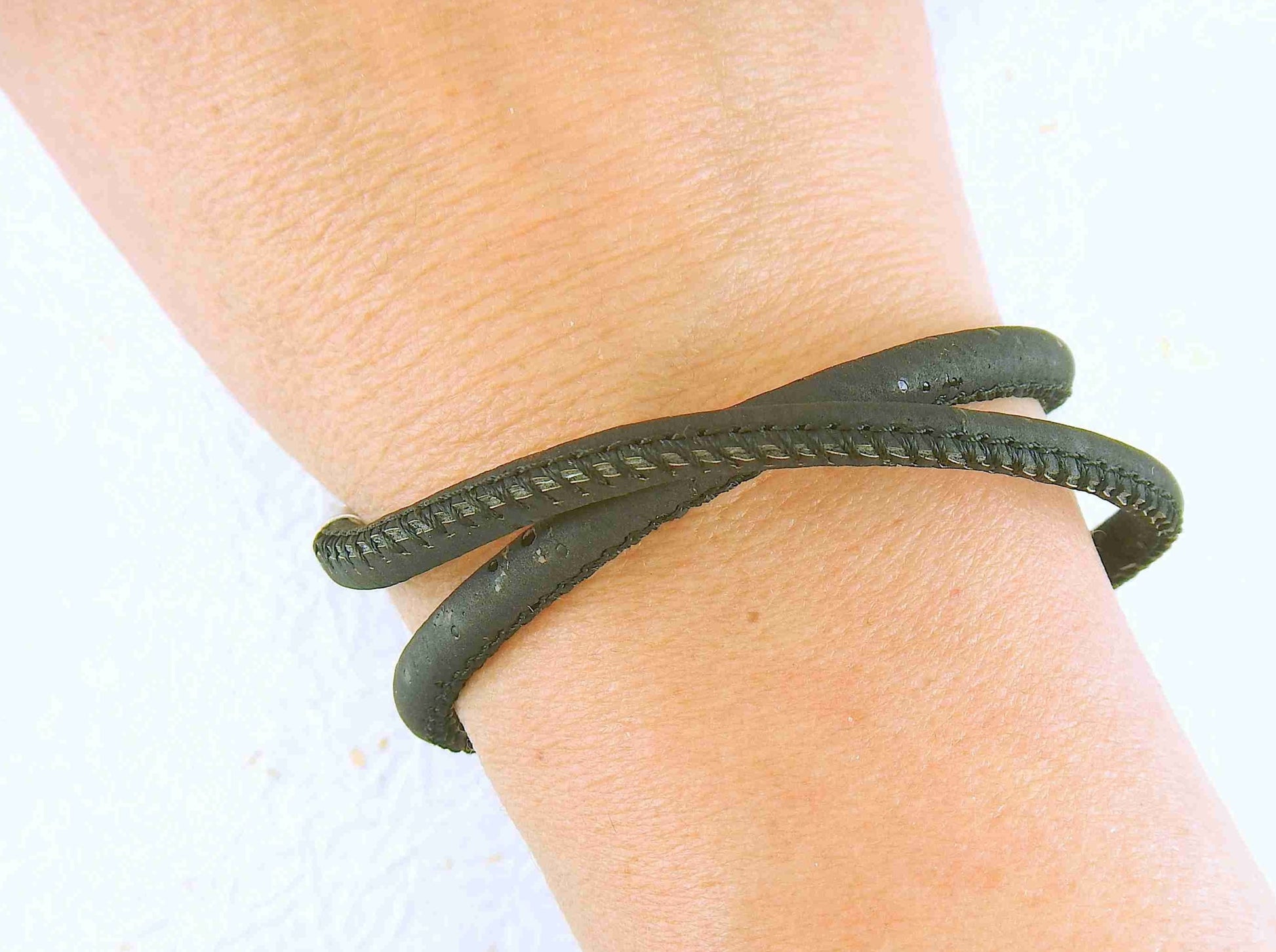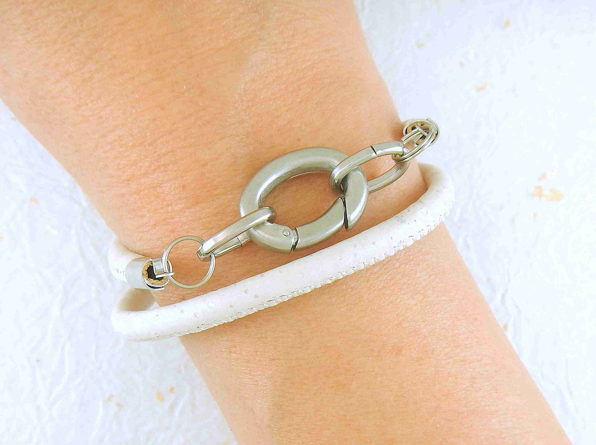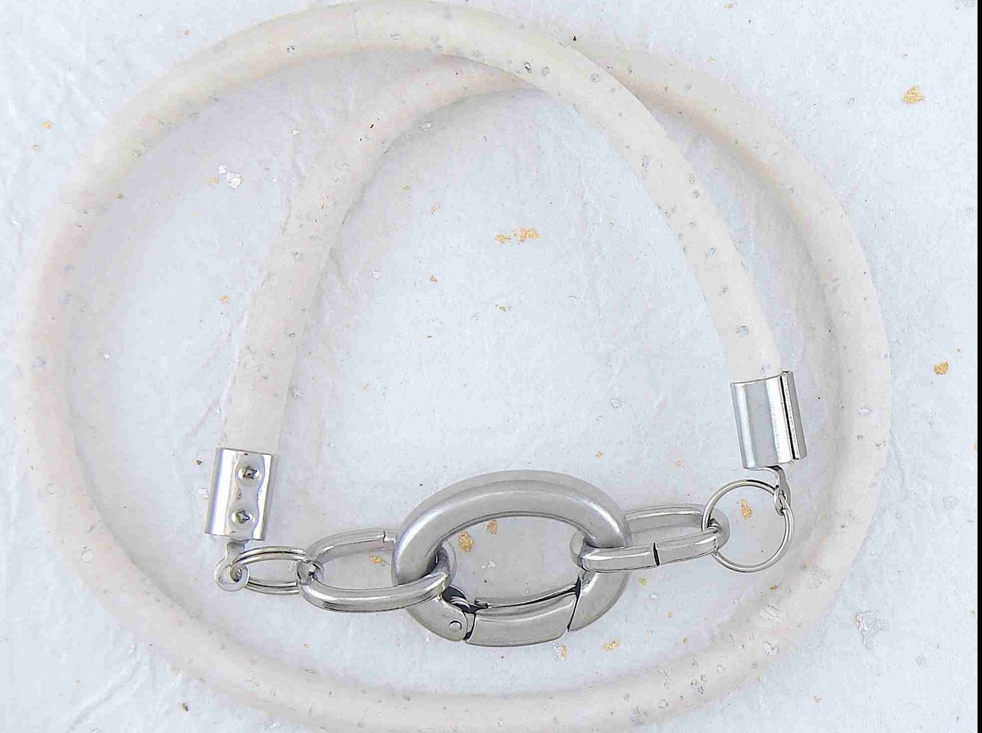 Double-row 6mm round cork bracelet with oval stainless steel clasp in 3 neutral colours (white, black, starry night)