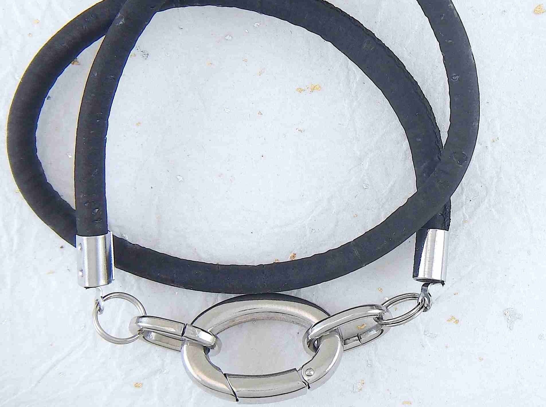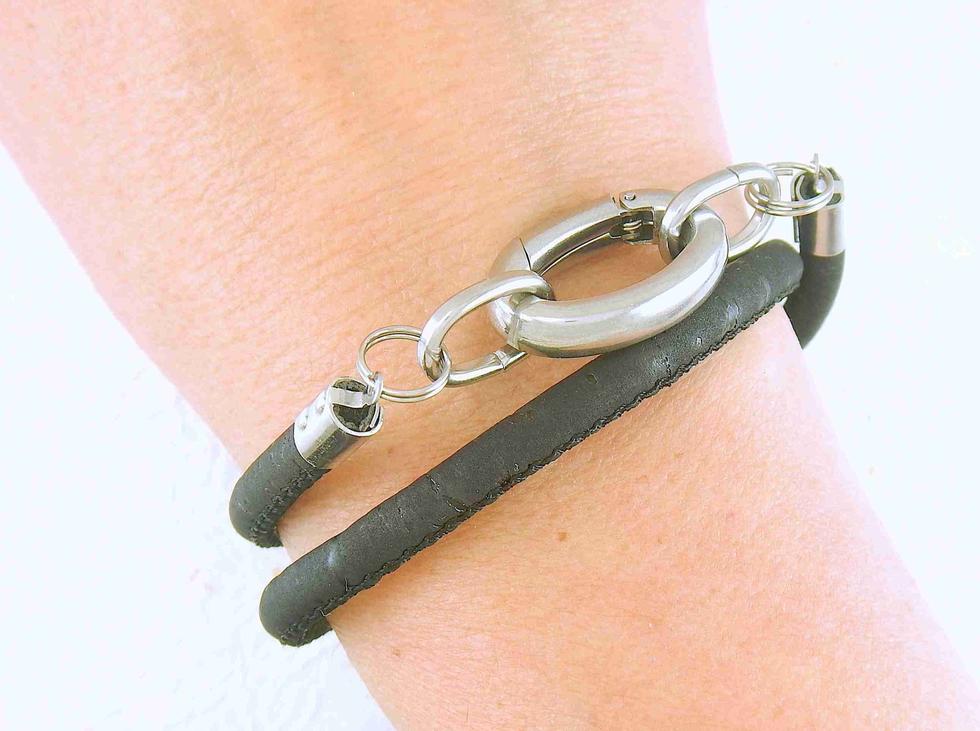 - Materials: Cork on cotton core, hypo allergenic stainless steel