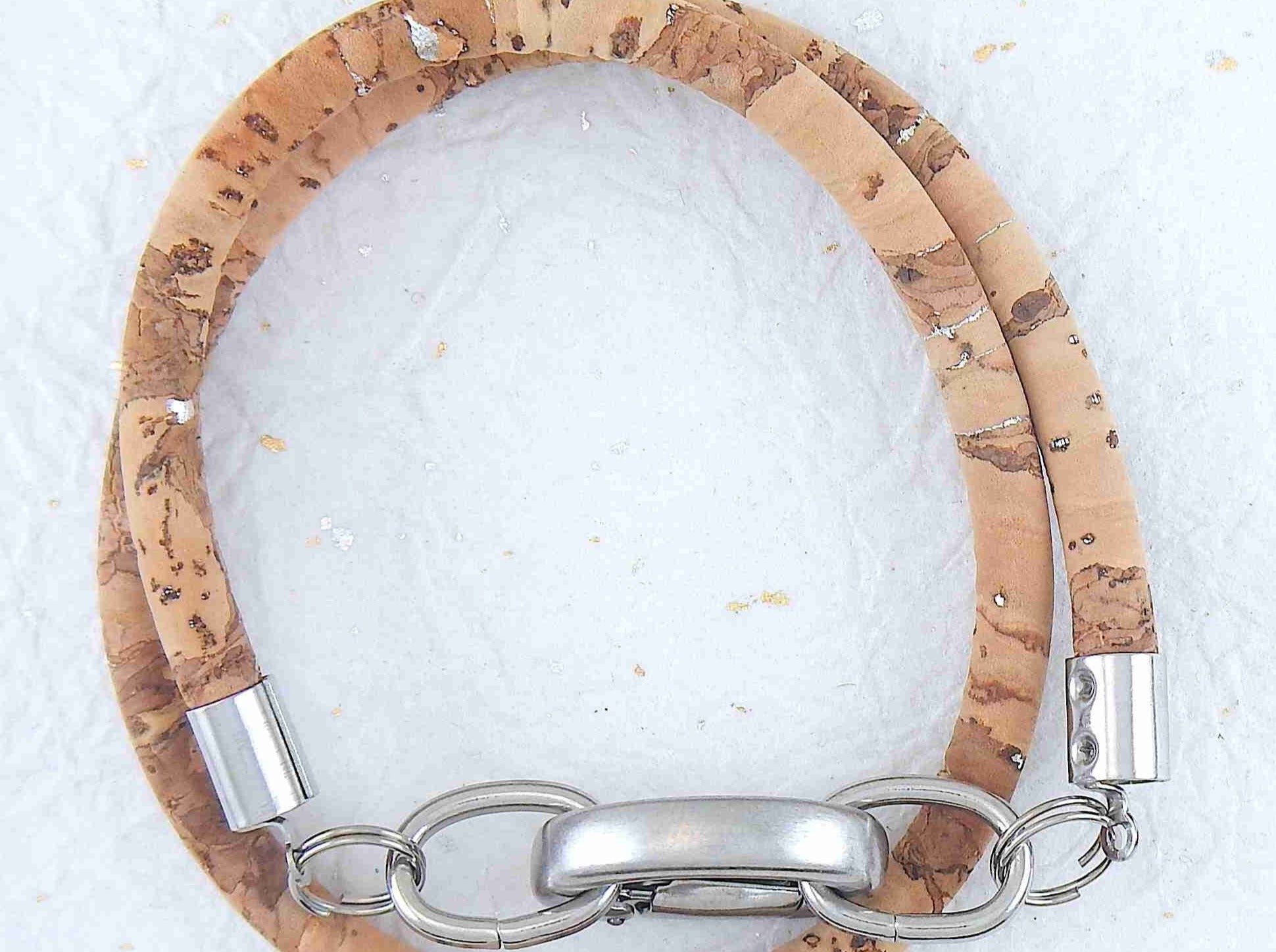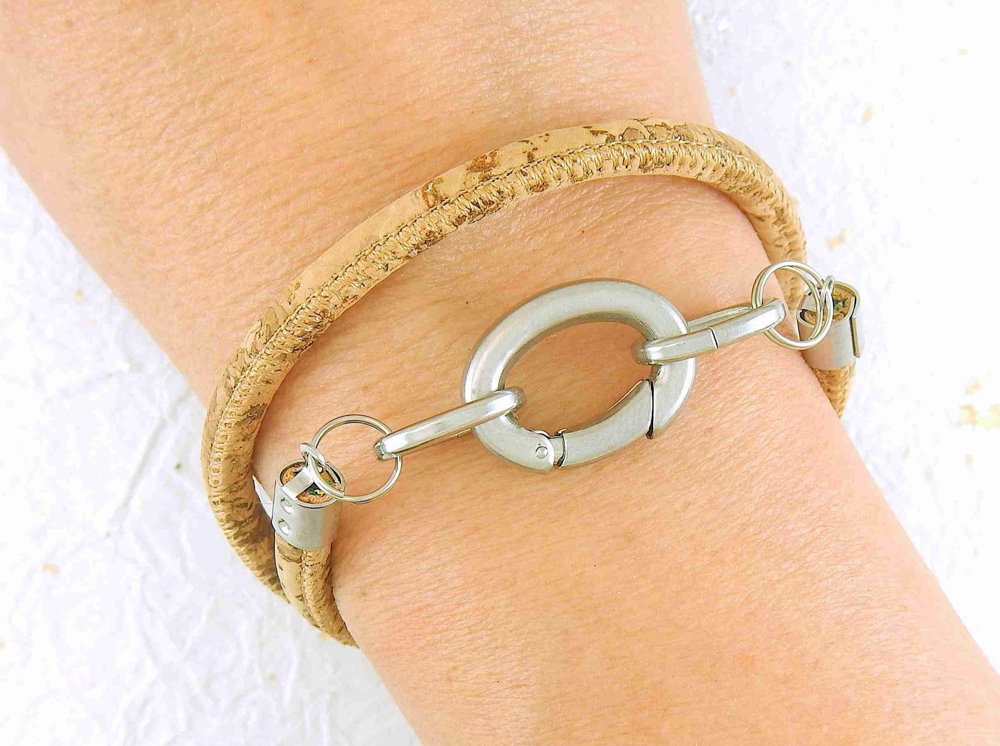 - Materials: Cork on cotton core, hypo allergenic stainless steel