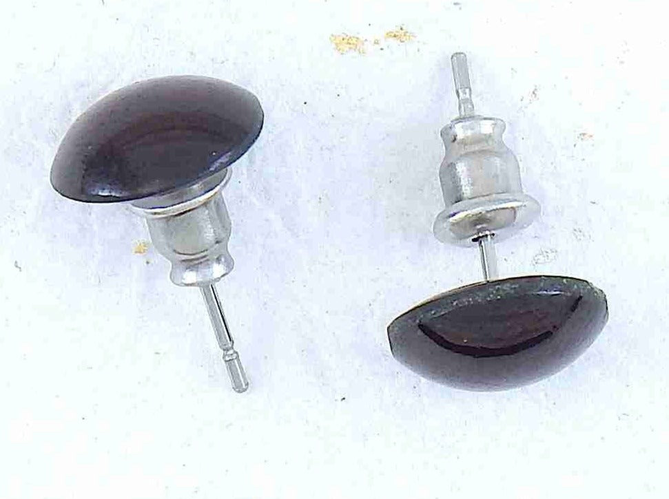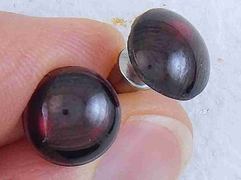 Ear studs with 10mm round deep red garnet stone cabochons, stainless steel posts