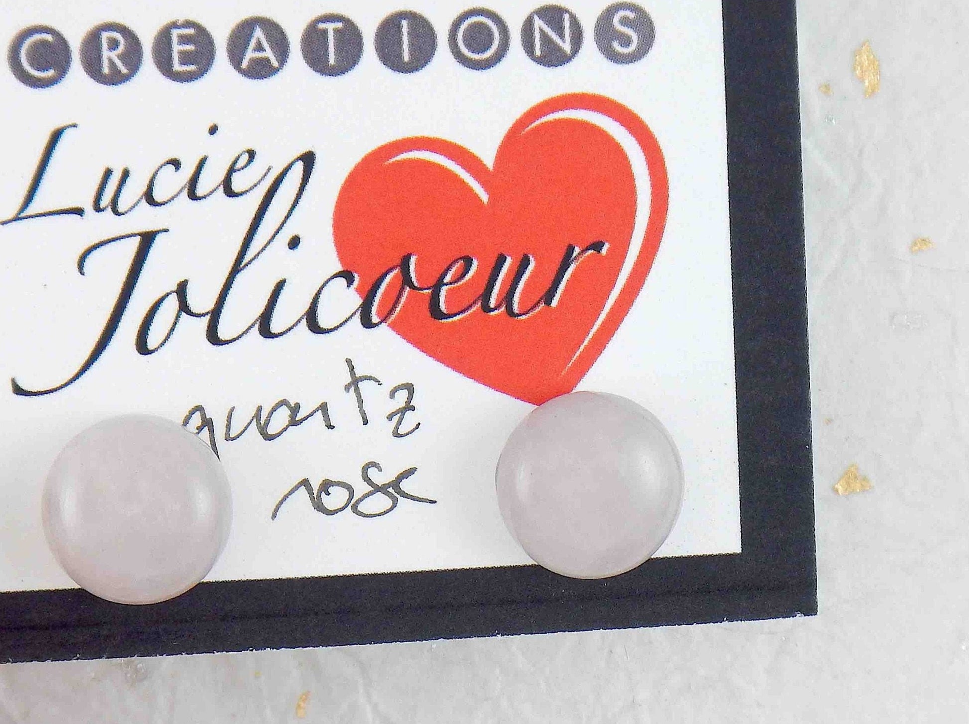 Ear studs with 10mm round rose quartz stone cabochons, stainless steel posts