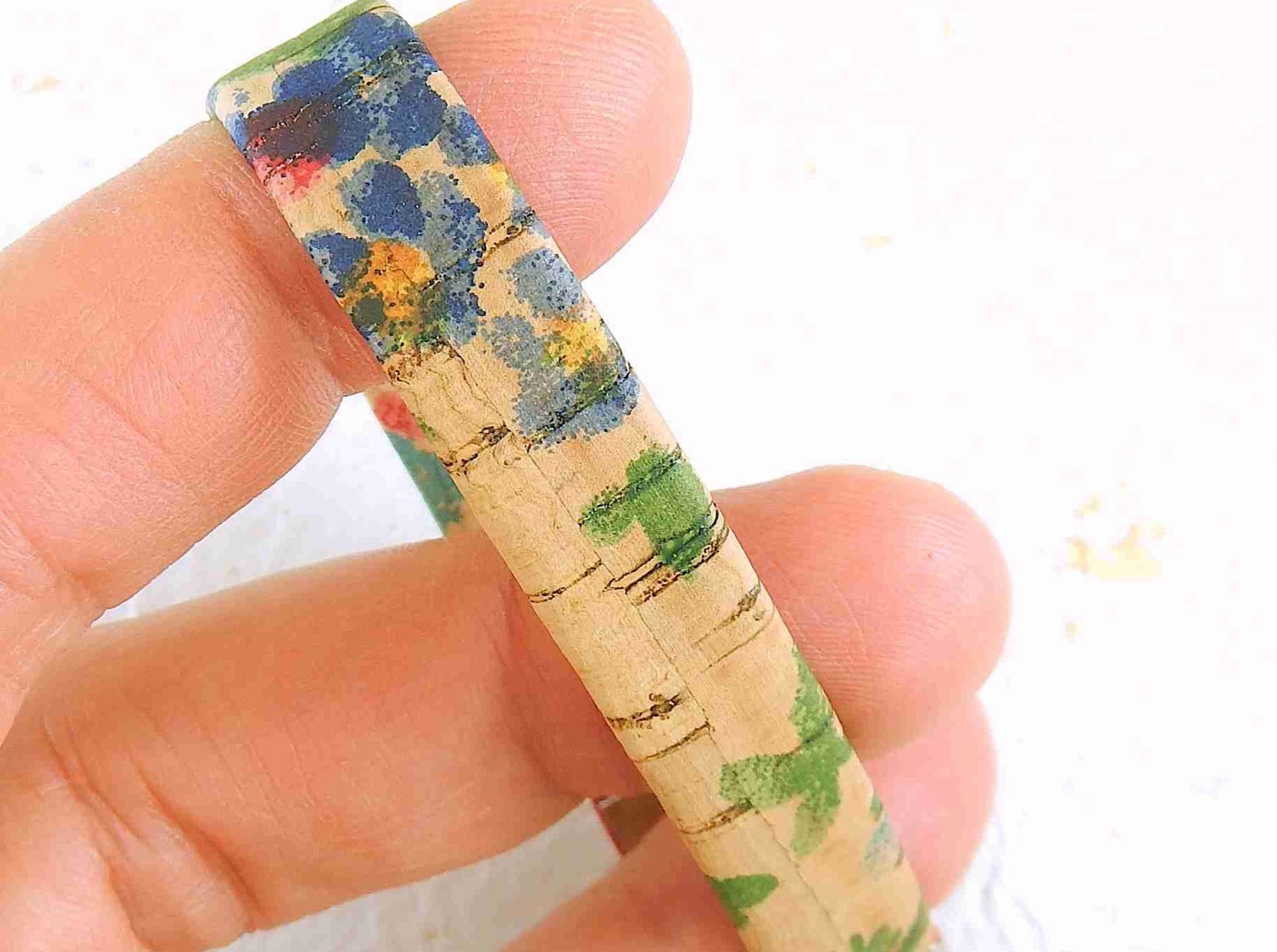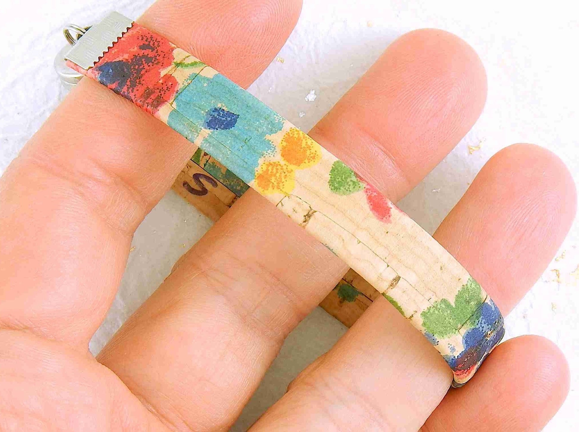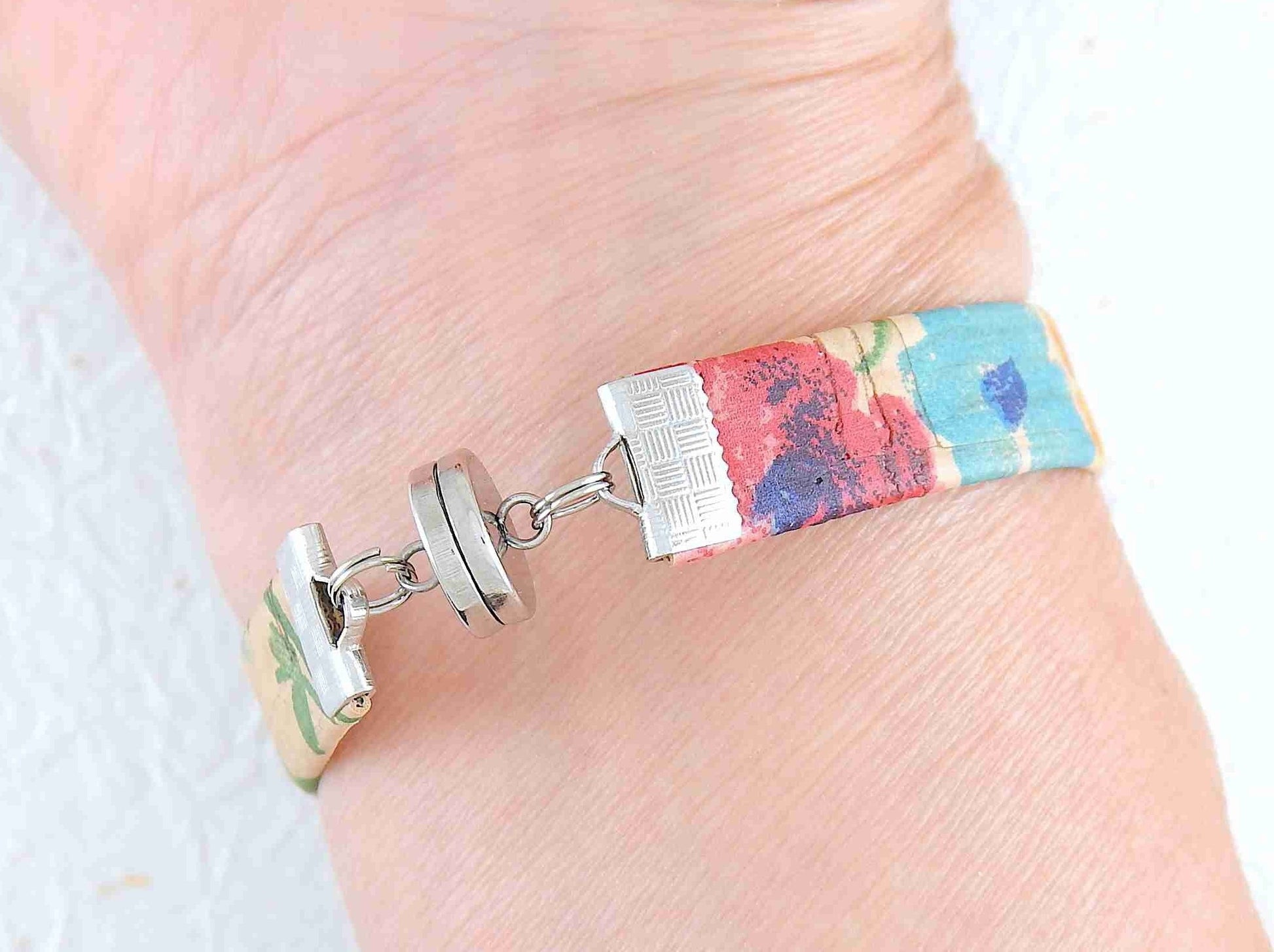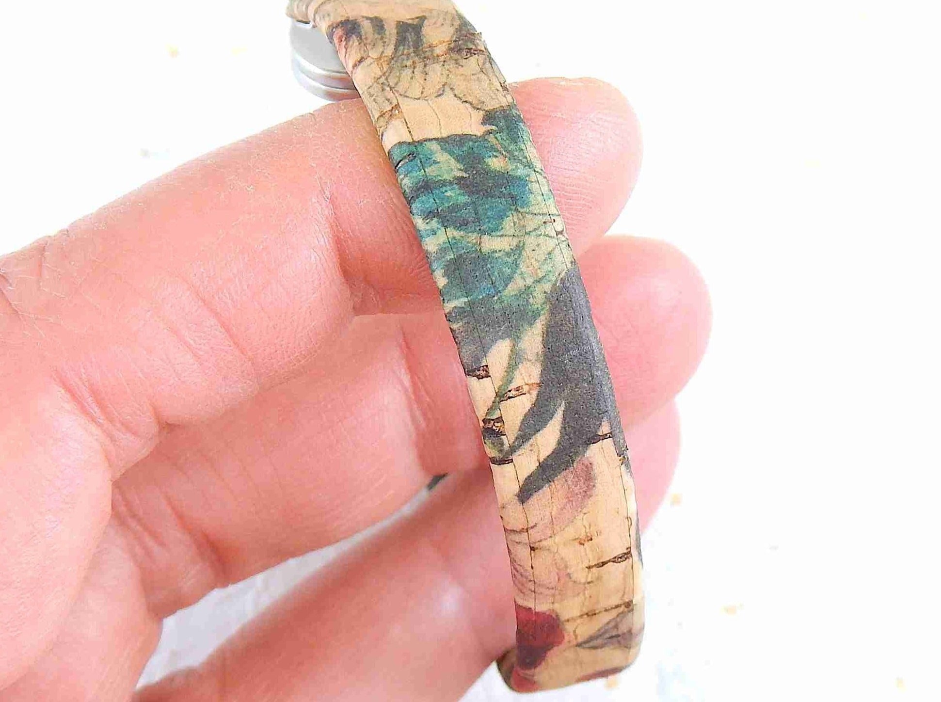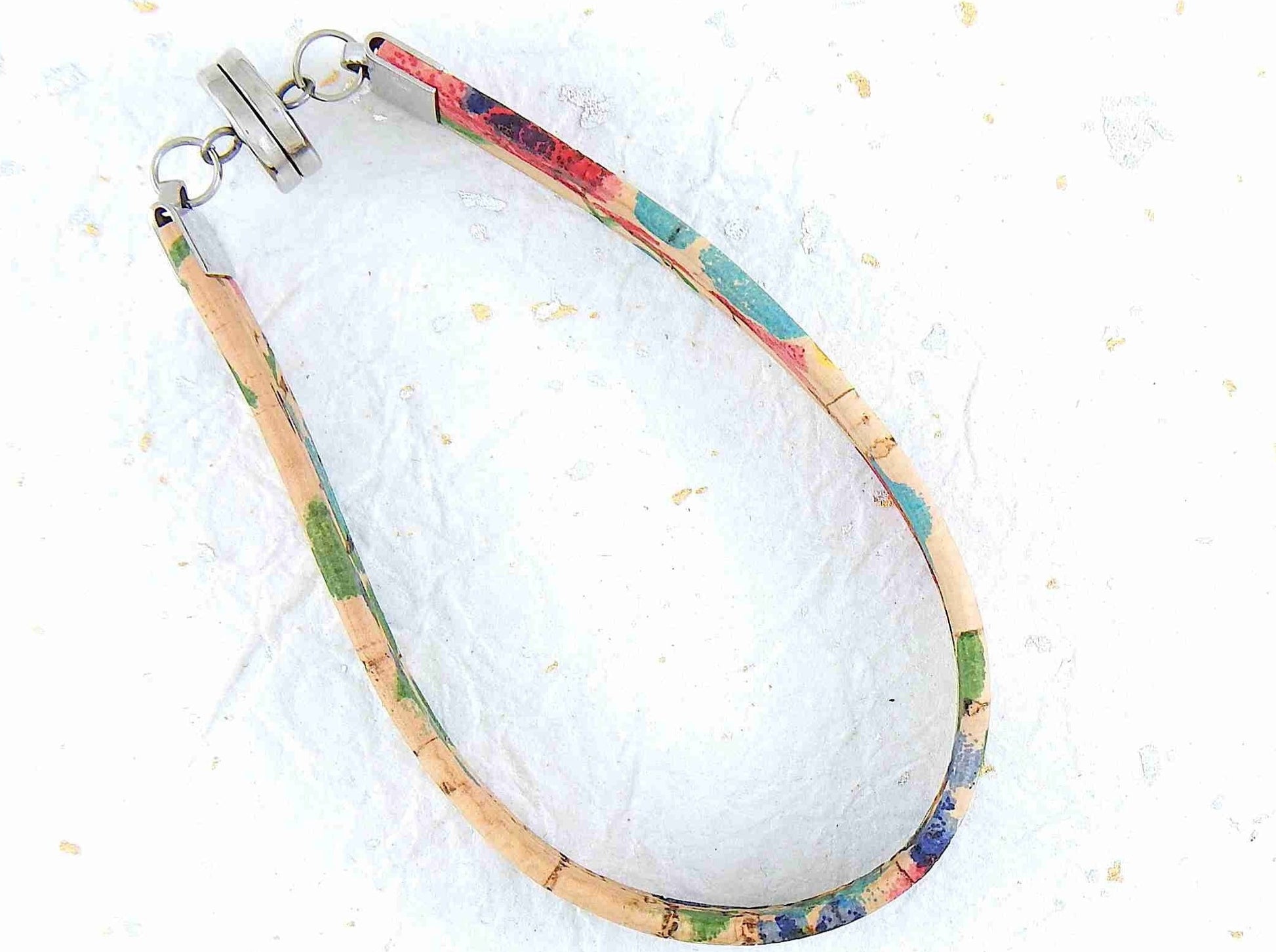 Simple 10 mm flat cork bracelet with magnetic stainless steel clasp in 2 flower patterns (soft or bright colours)